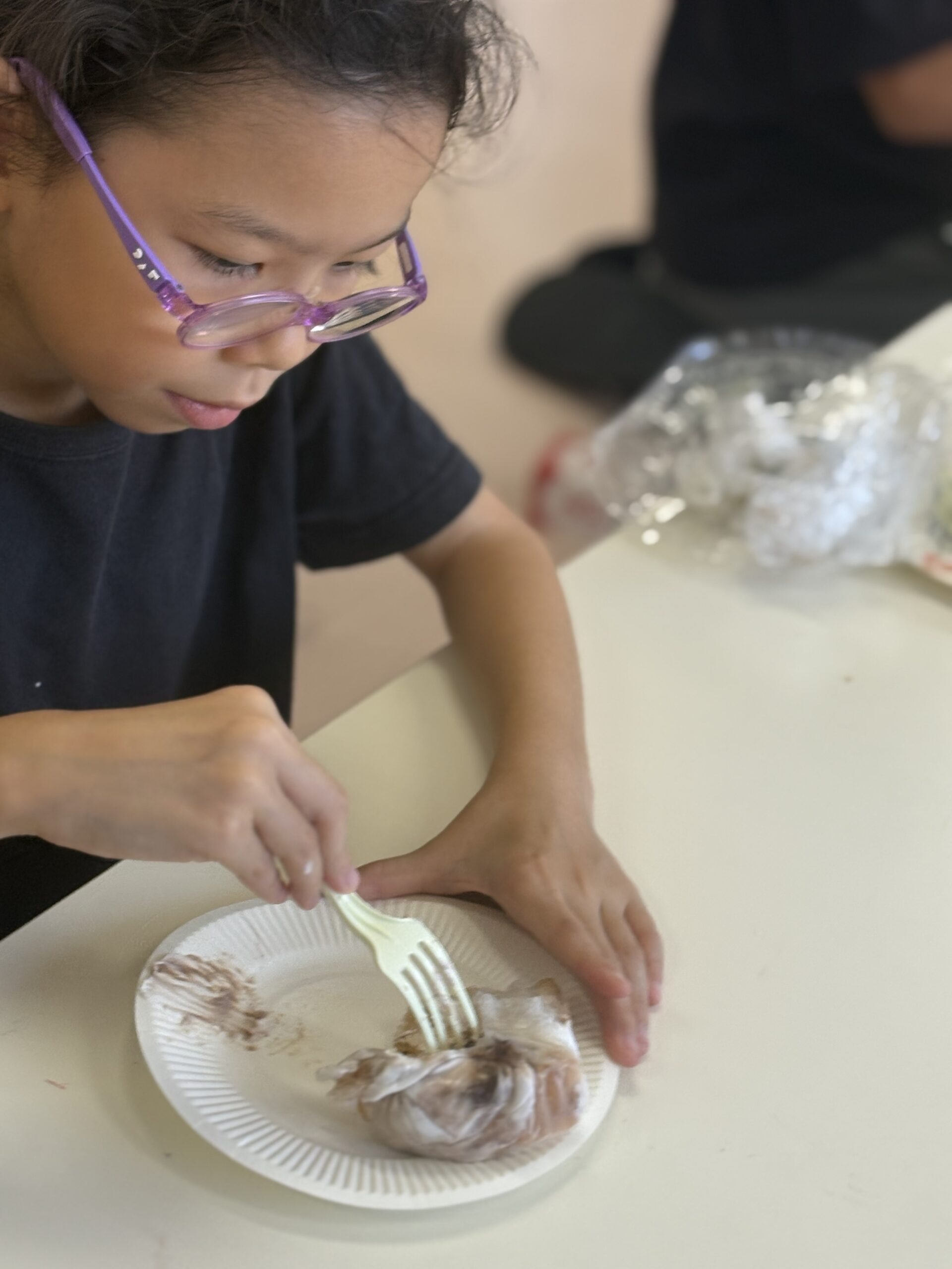 クレープづくりでは、ライスペーパーをやさしく水にくぐらせ、好きなフルーツやクリームを包んで完成!
