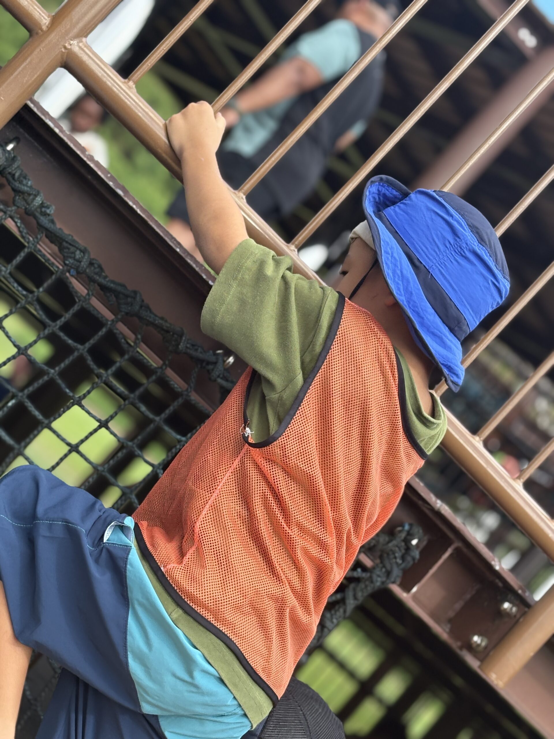 公園の大きなトランポリンでは「やったー!」「高く跳べた!」と大はしゃぎ。