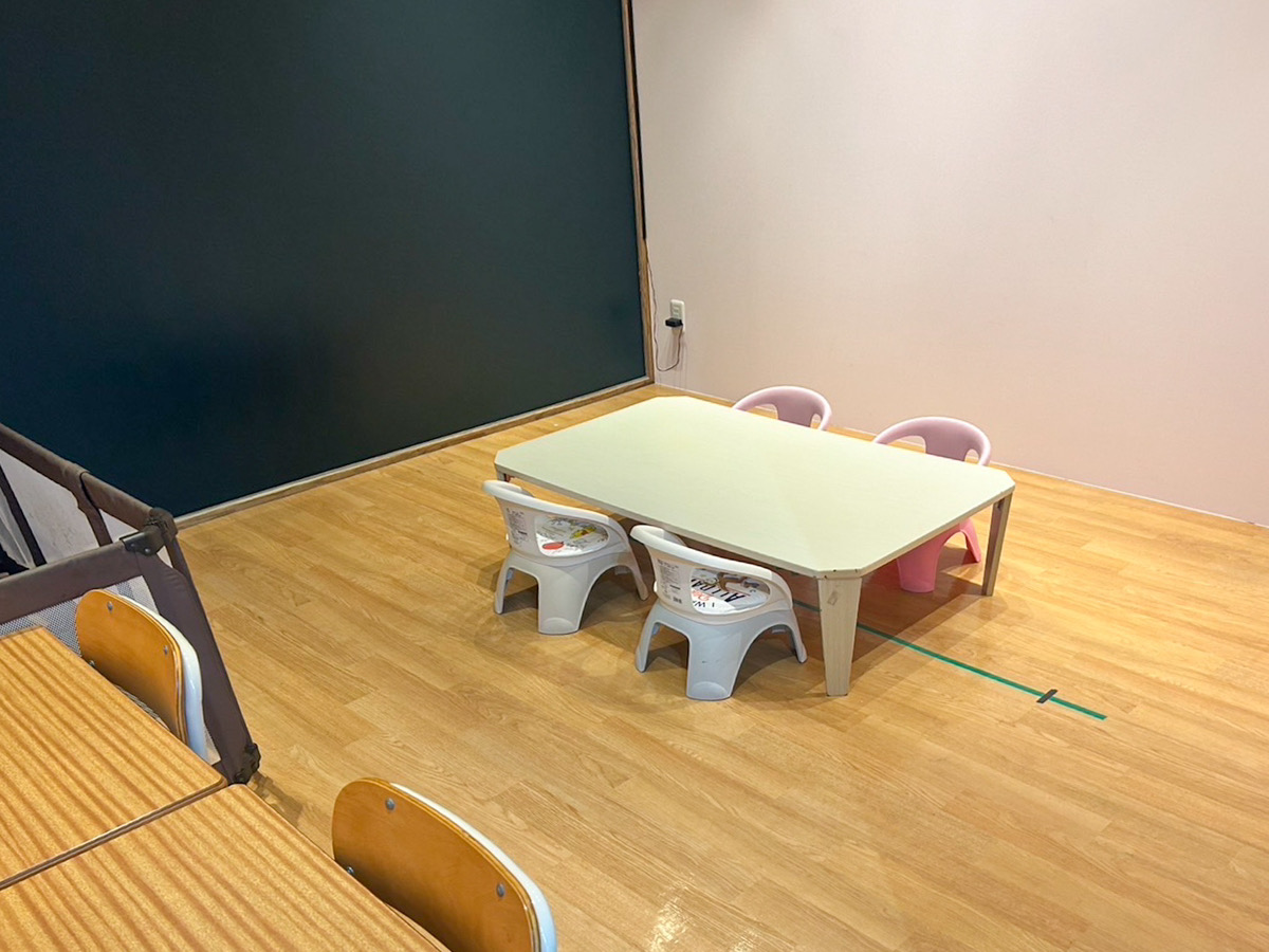 少人数で机上課題のカリキュラムを行ったり、お昼寝をしたりできる落ち着いたお部屋です。安心できる環境で、集中して取り組んだりゆったり休んだりできます。
