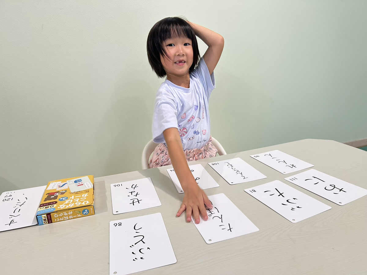 一人ひとりに合った課題を提供し、机上での活動に取り組みます。運動のあとのタイミングで行うことで、エネルギーを発散した状態から落ち着いて課題に集中でき、学びの効果も高まります。
