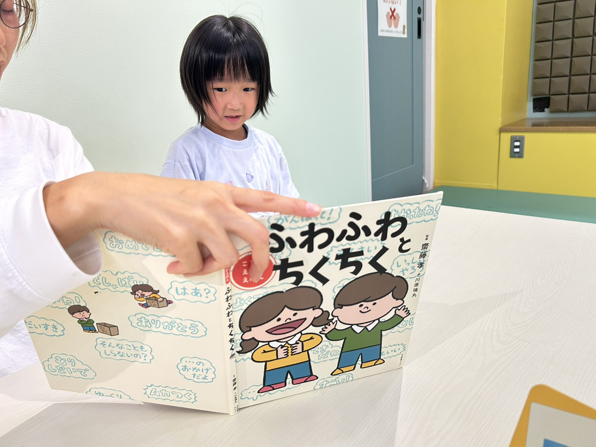 ダンスや絵本、曜日の歌を通して、楽しみながら「課題モード」への切り替えを行います。活動の見通しを持つことで安心して過ごせるようサポートします。