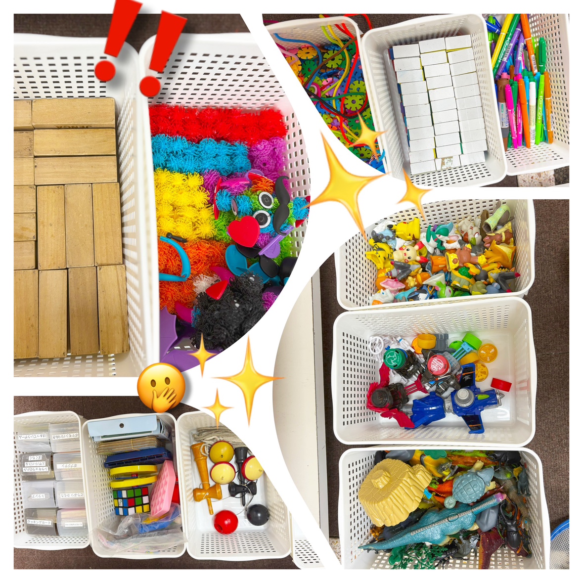 おもちゃのカゴの中を確認して、「ここ、ちょっとごちゃごちゃしてるな〜」と