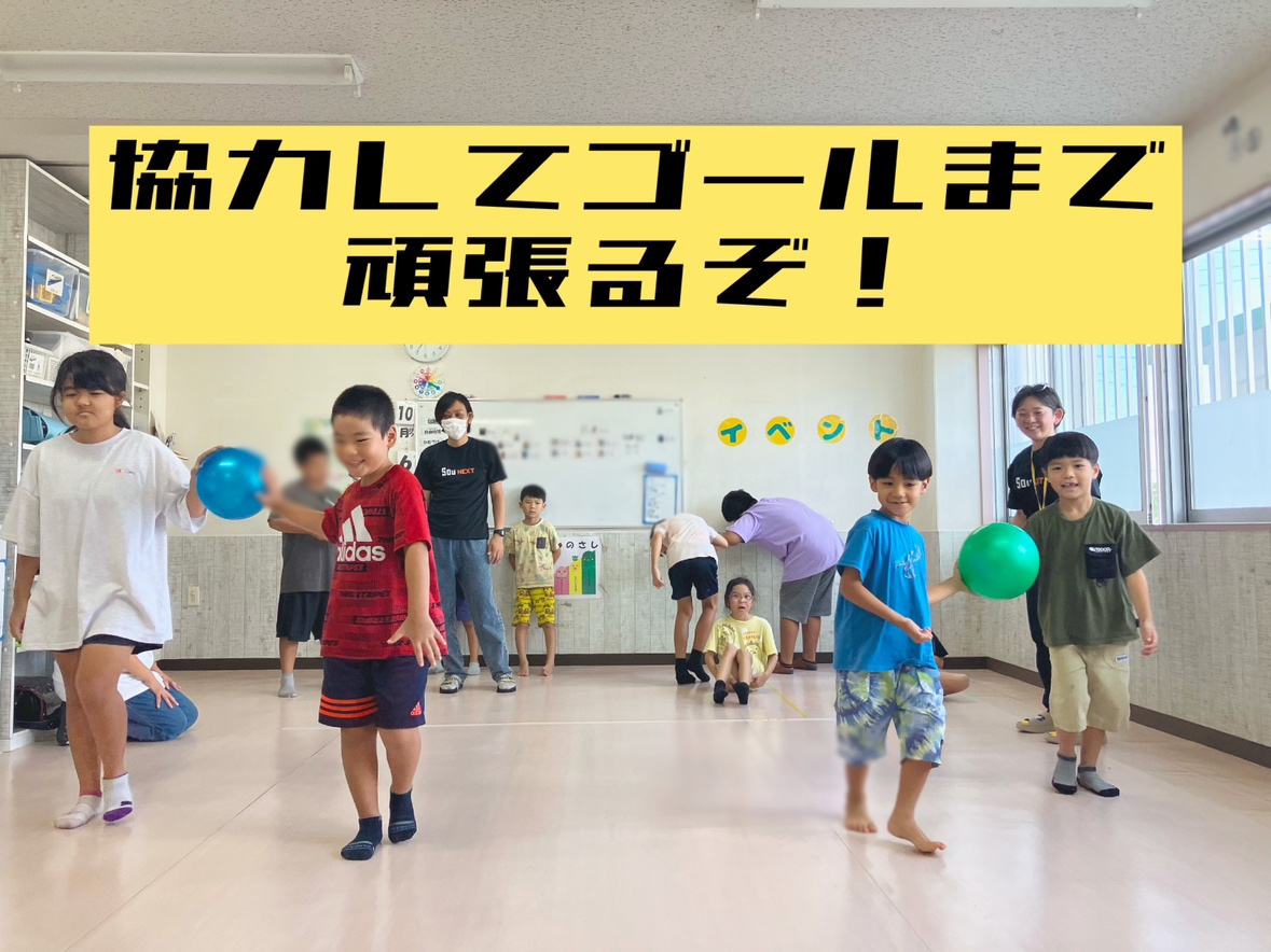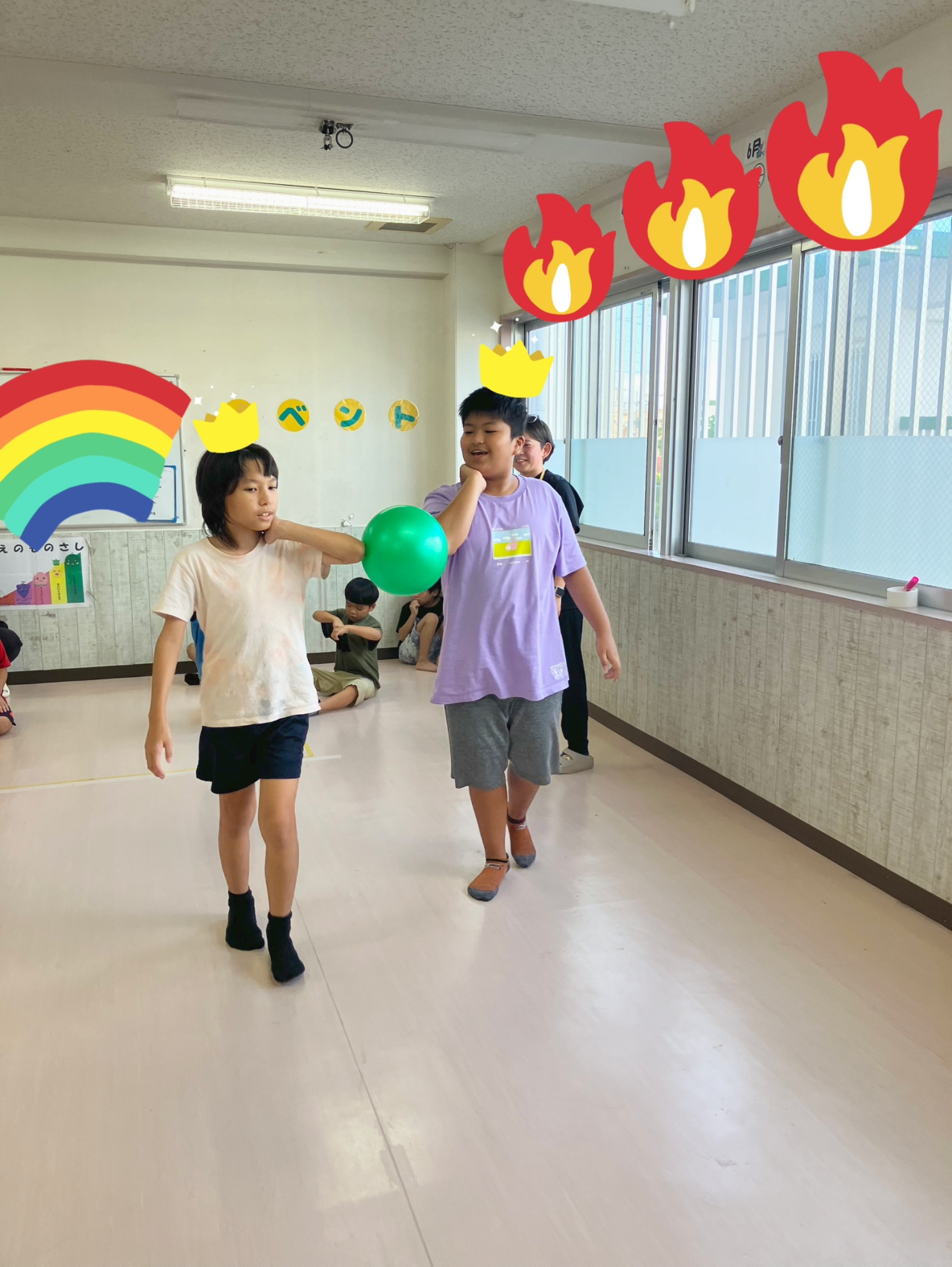 の活動は、ペアで協力しながらボールを落とさずに運ぶというシンプルなルールの中で、バランス感覚・協調性・身体の感覚統合 を育てることをねらいとしています😊
