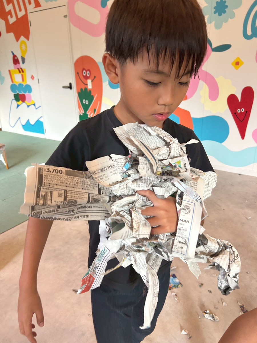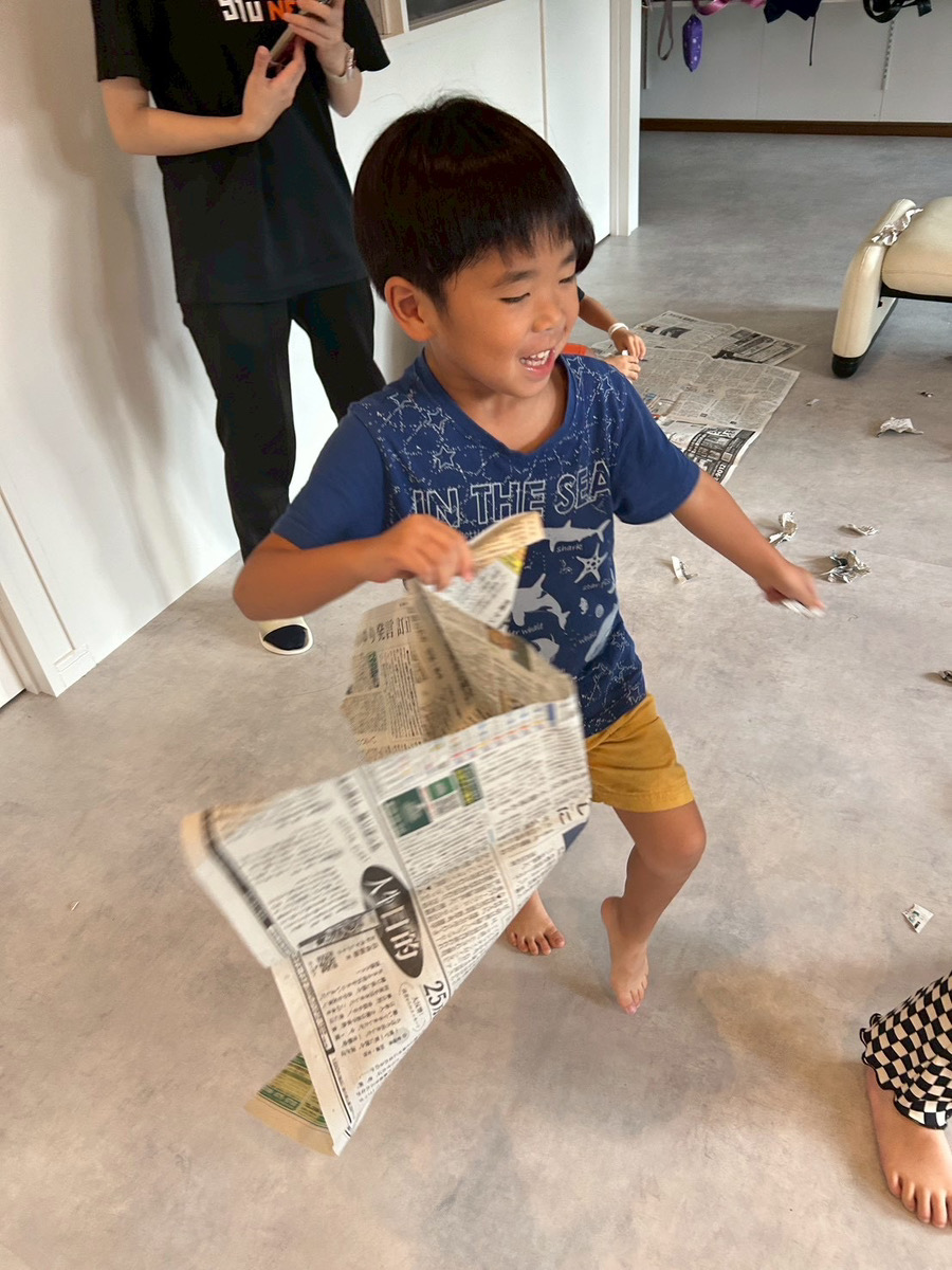 今回の活動は、「音楽が流れている間だけ新聞を破る」というシンプルながらも奥深い遊び🎶📄