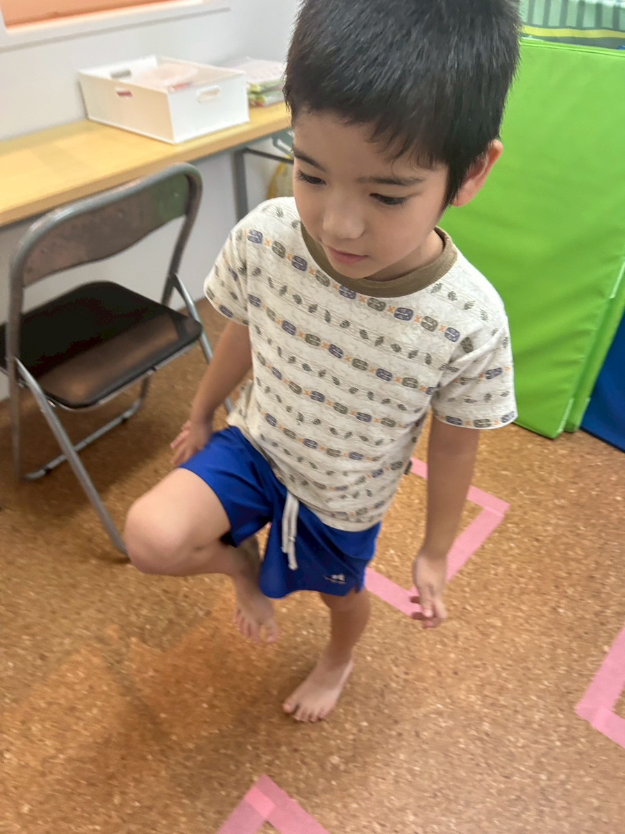 バランスを取ろうとする中で体幹がしっかり使われ、同時に集中力アップにもつながります😊
