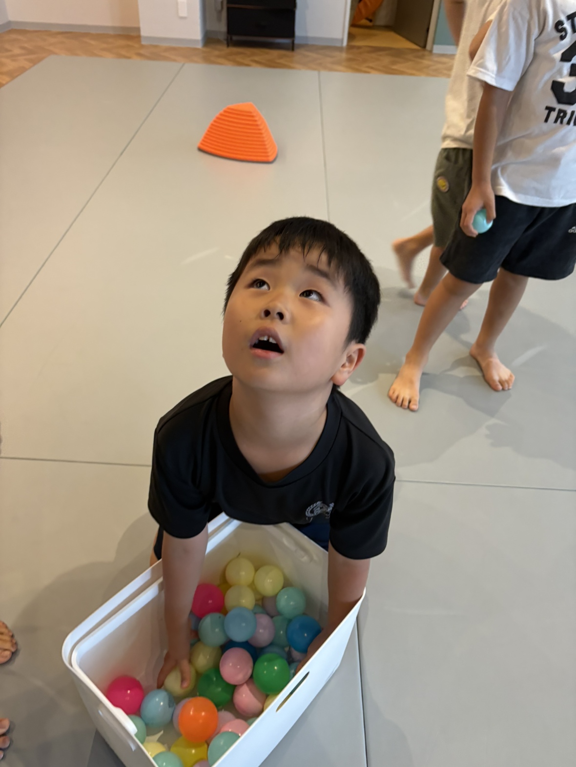 かごをよく見て狙いを定めながらボールを投げ、入った時には嬉しそうな表情が見られました😊