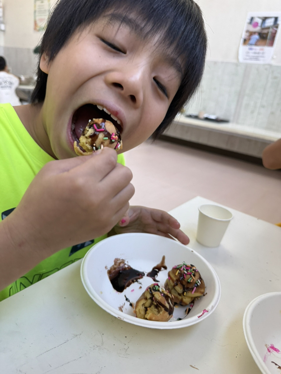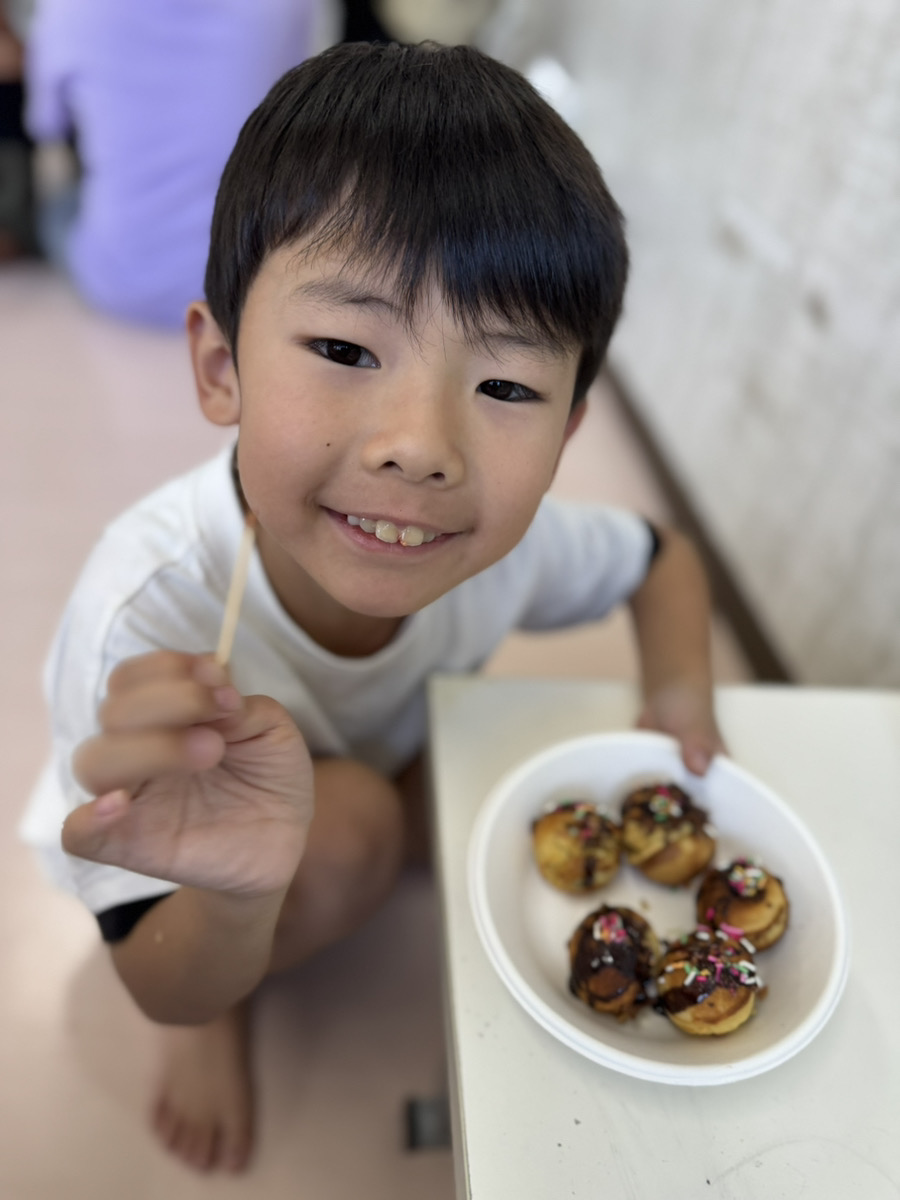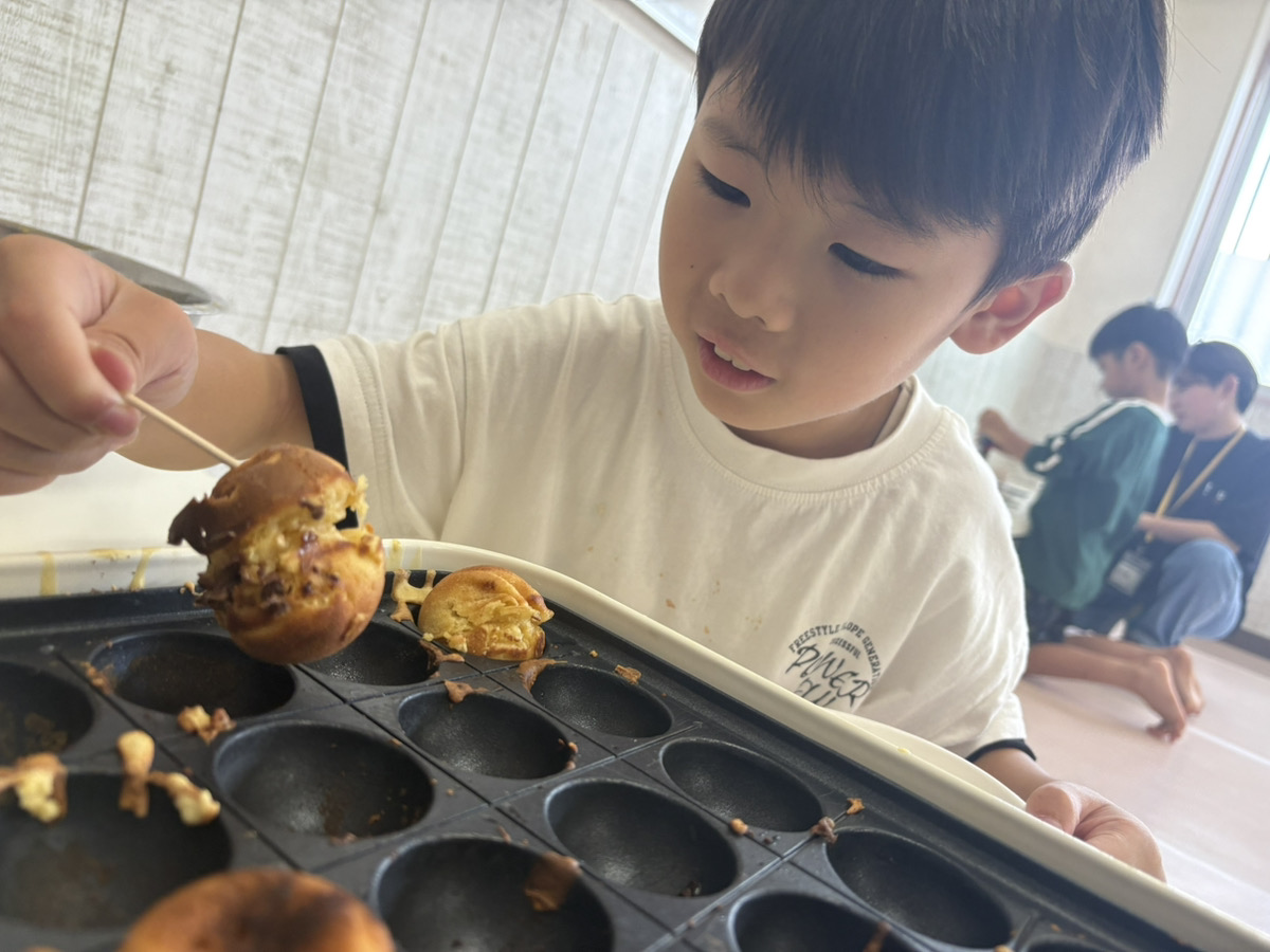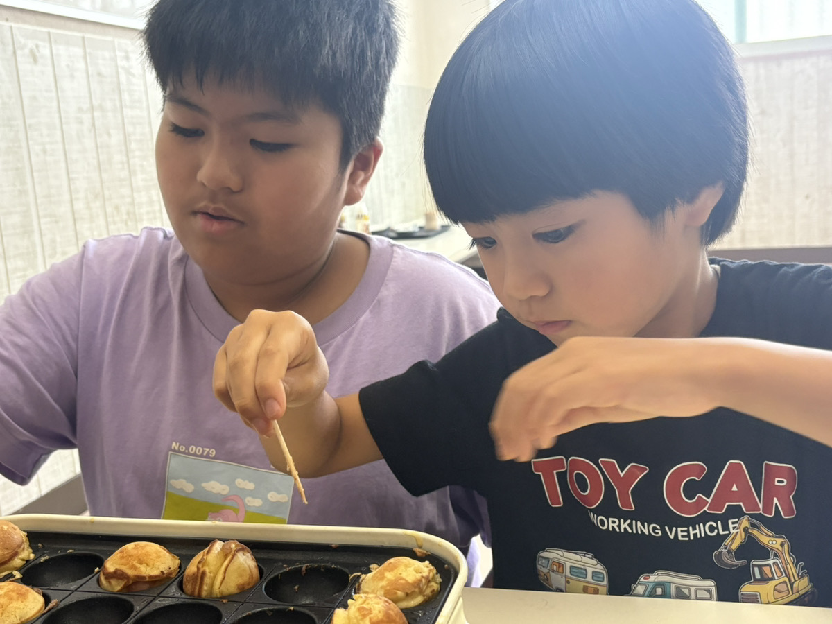 2人ずつ交代でホットプレート前に立ち、1人 5個ずつ 作るスタイルで進行🍳✨