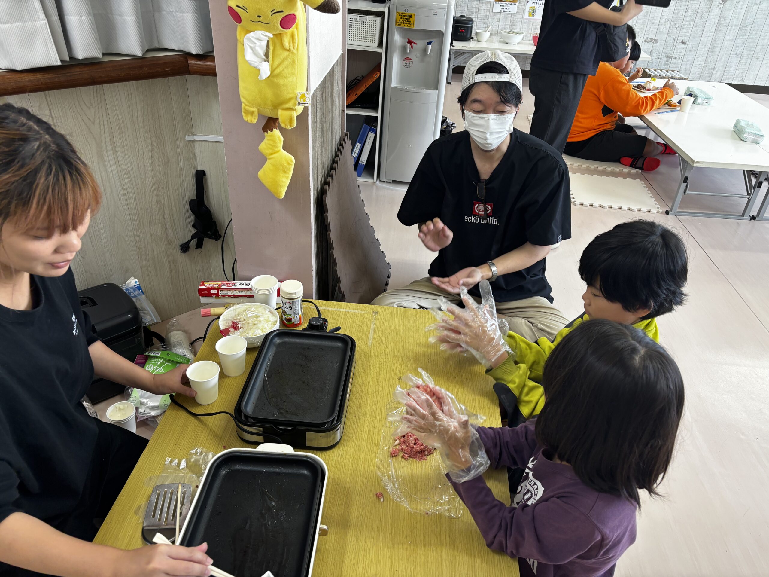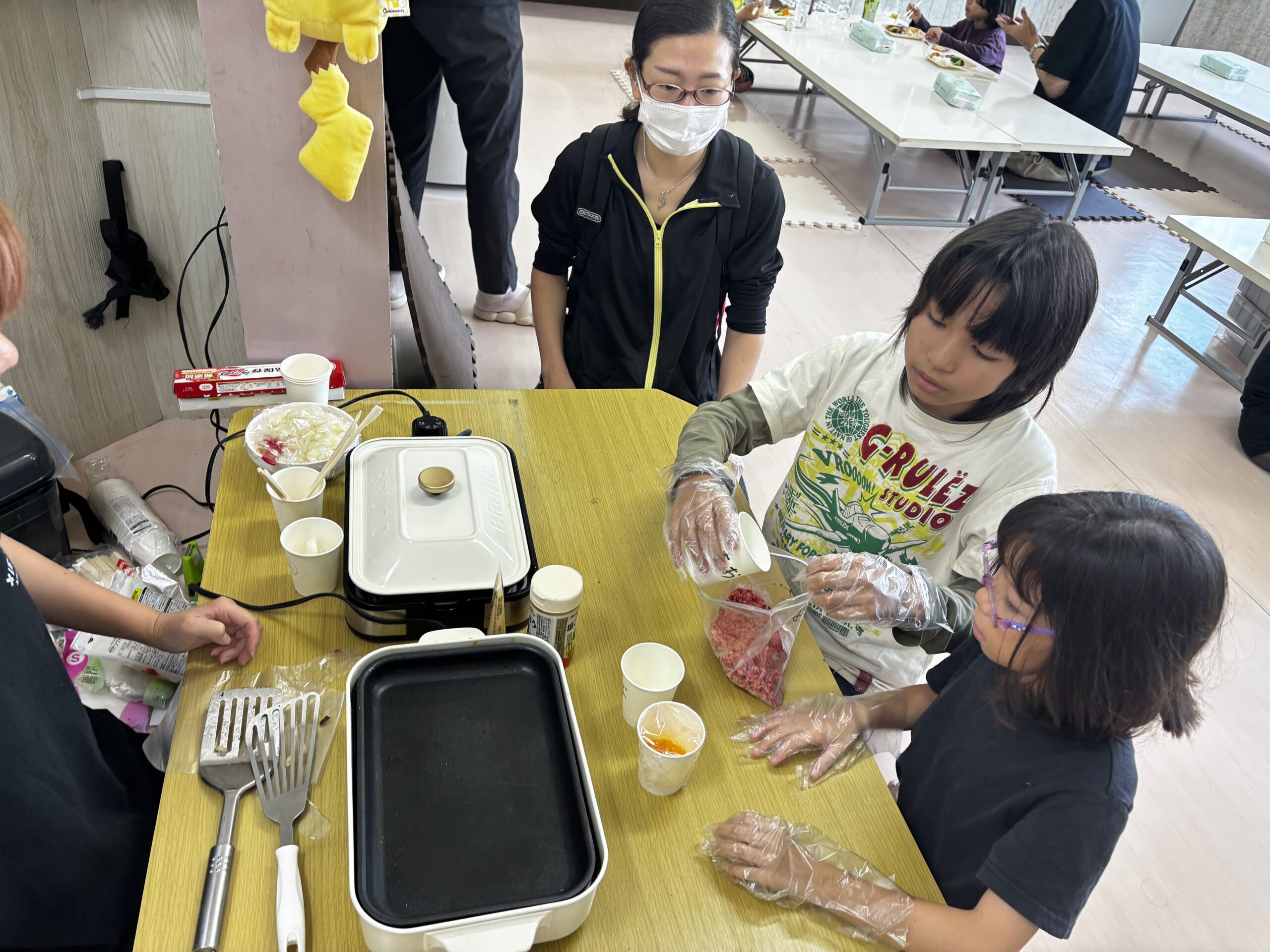 ホットプレートへ乗せるとジュ〜ッ!という音と香りで、子どもたちはさらにワクワク😆✨