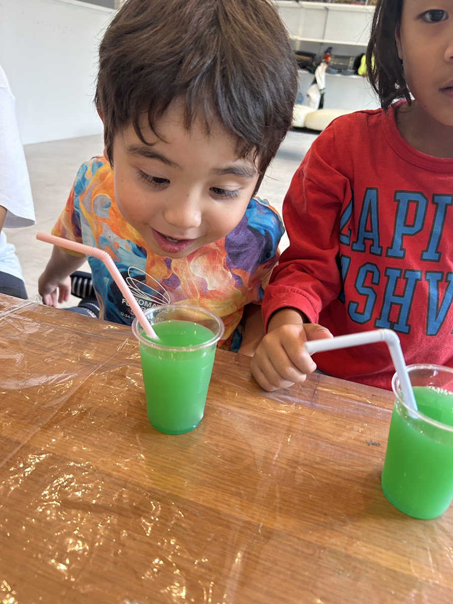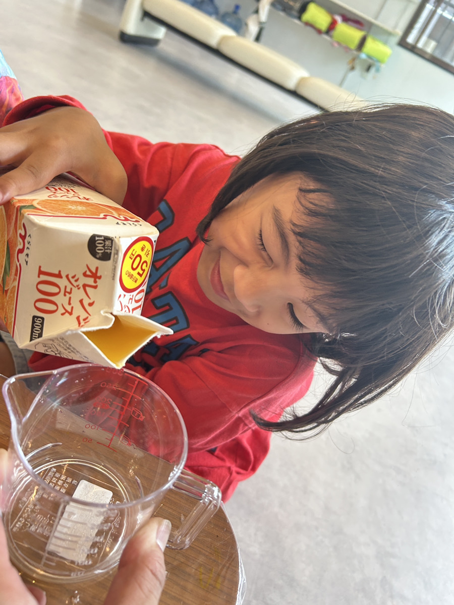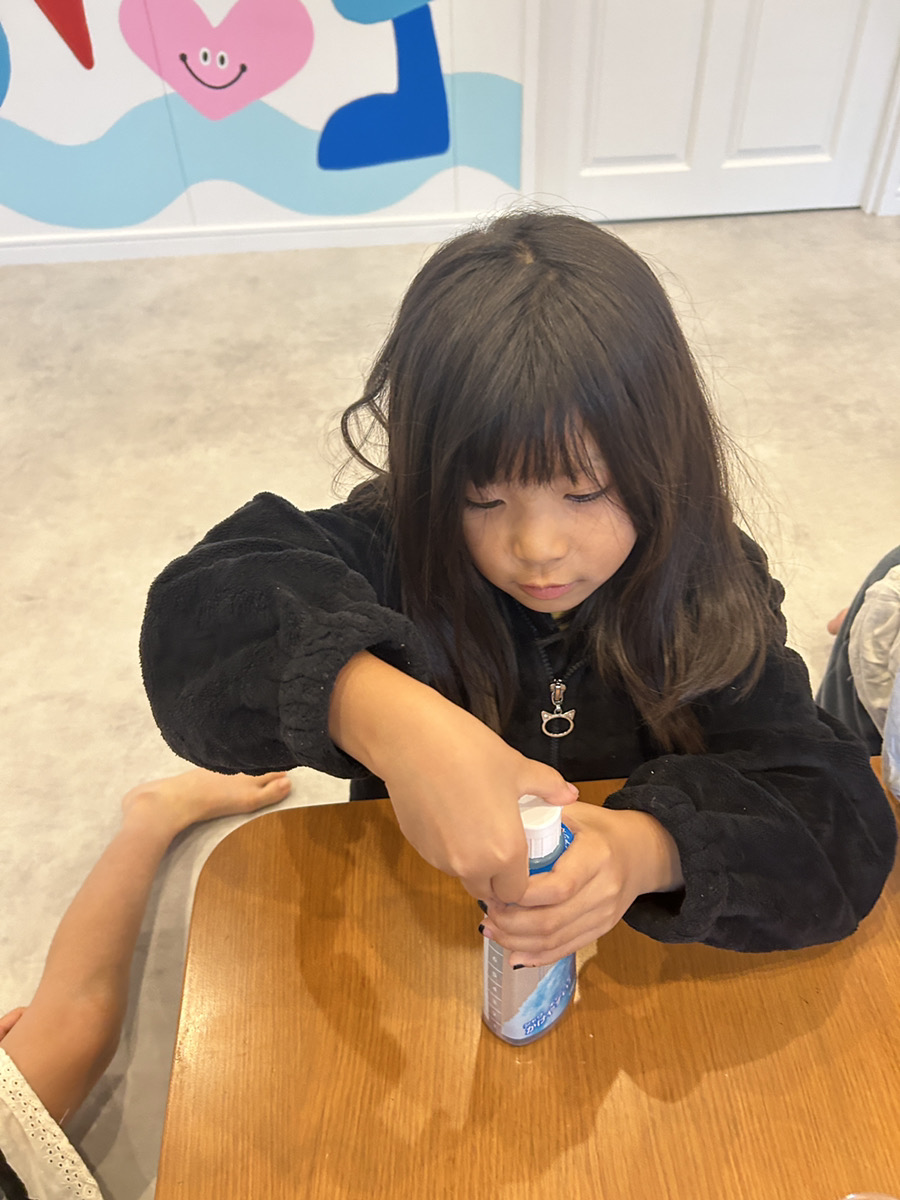子どもたちは、「どうなるんだろう?」と興味津々の様子で、手元をじっと見つめながら慎重に注いでいました👀💡