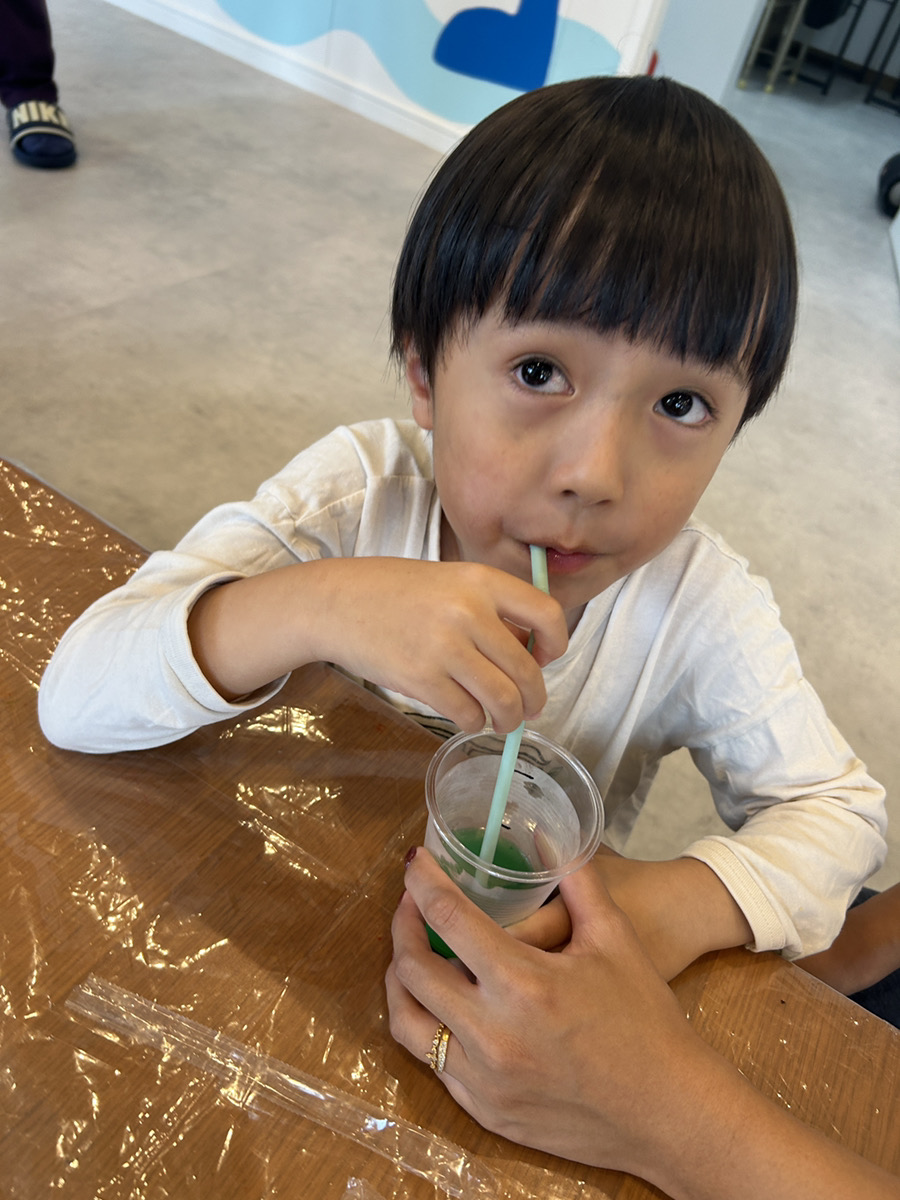 色が分かれていく様子はとてもきれいで、完成したドリンクを見て「おぉ〜!」と嬉しそうな表情がたくさん見られました✨