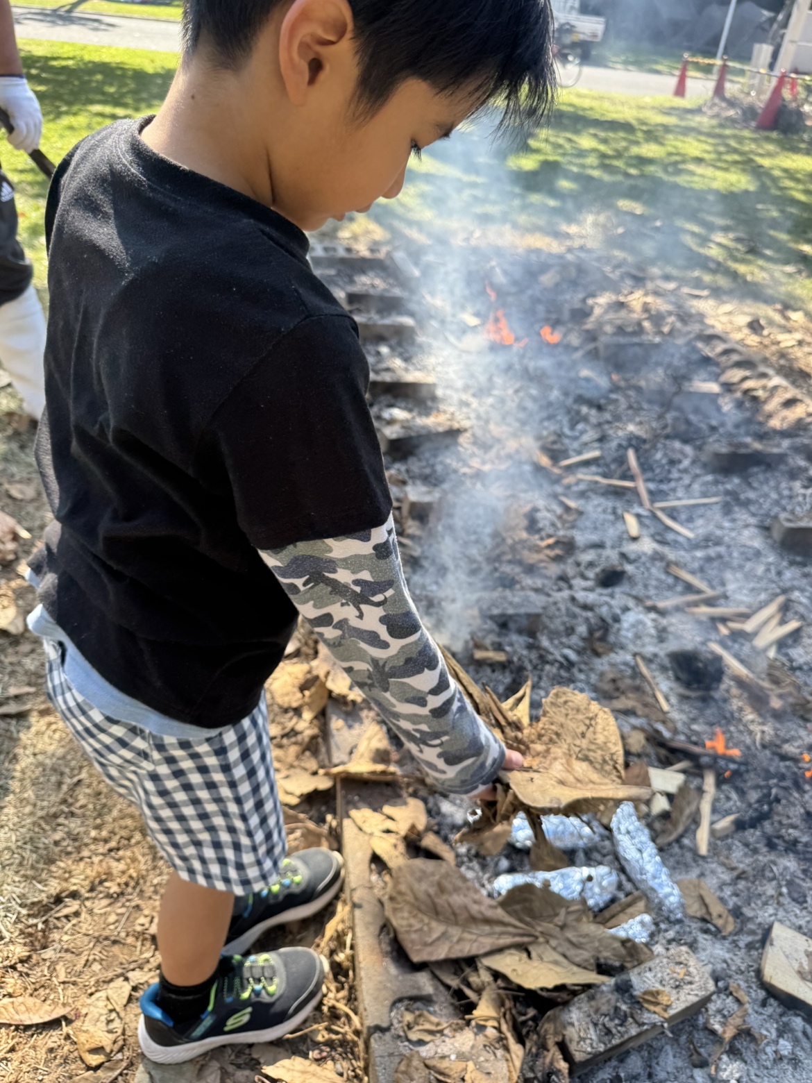 焼けた芋を開けた瞬間、「あつっ!でもおいしそう!」と大喜びでした😊