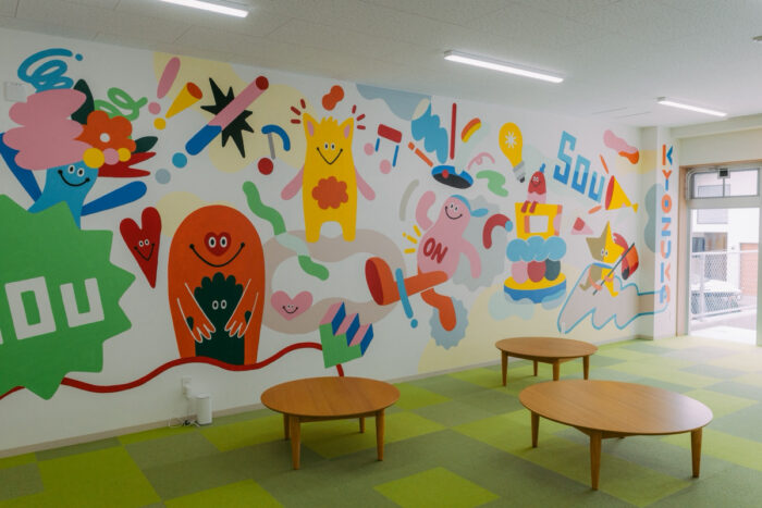 SOU共通のアーティストコラボの壁画がある療育室など、そこで過ごすだけで創造力が刺激される空間です。