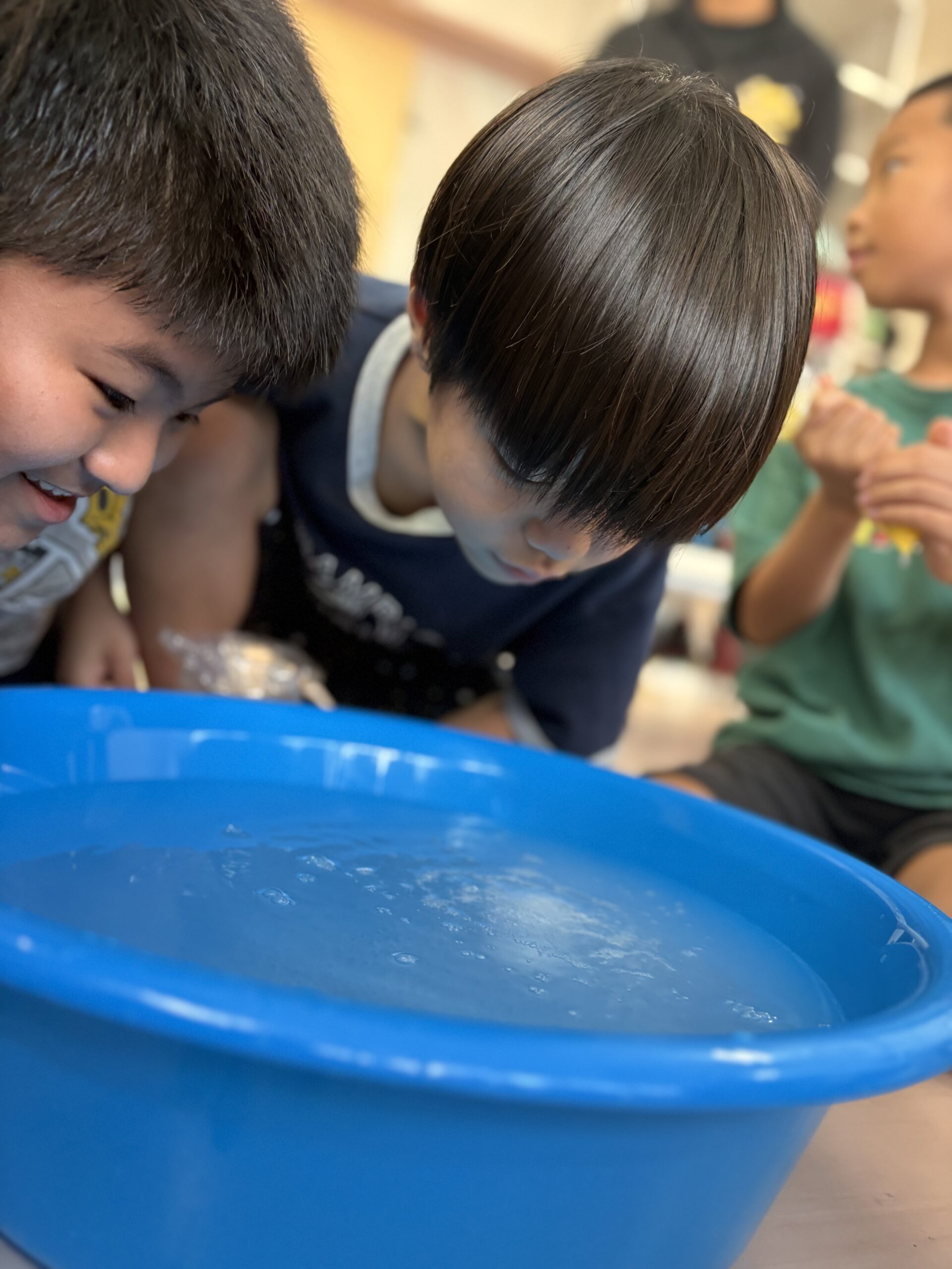 「なんで泡が出るの?」「水に入れると変わるんだ!」と、
