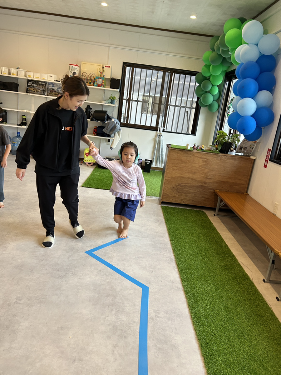片足でバランスを取りながら歩くことで、集中力と身体の安定性を養いました。
