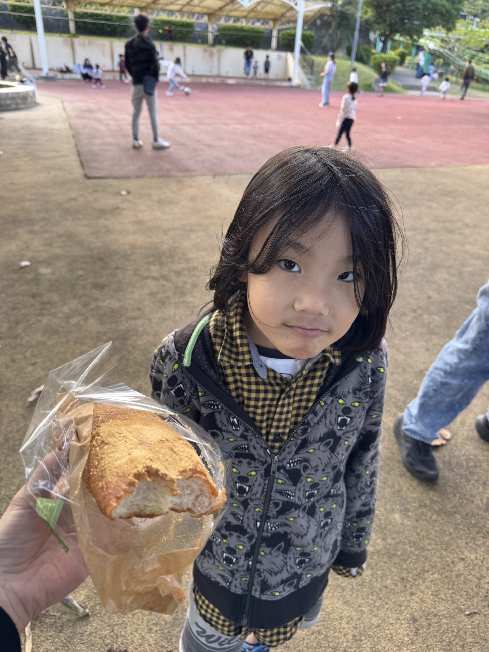 自分で選んだ揚げパンを嬉しそうに食べる姿が印象的でした✨