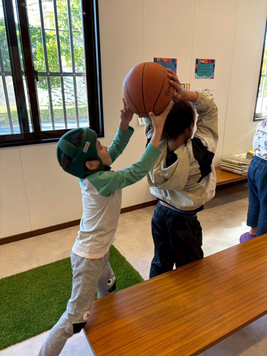 プリントに取り組む前の準備運動として、ボールを使ったレクリエーションを行いました。