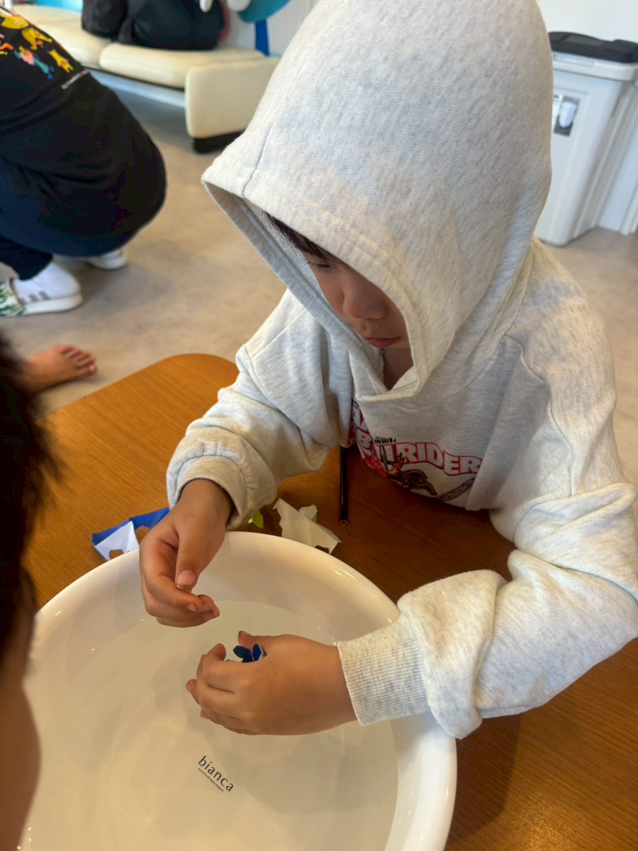 目で見て楽しみ、 実際に起こる変化から「なぜ?」を考えることで、 科学への興味や考える力を育む、とても良い時間となりました✨ 今後も、身近な素材を使いながら、 楽しく学べるサイエンス活動を取り入れていきたいと思います😊