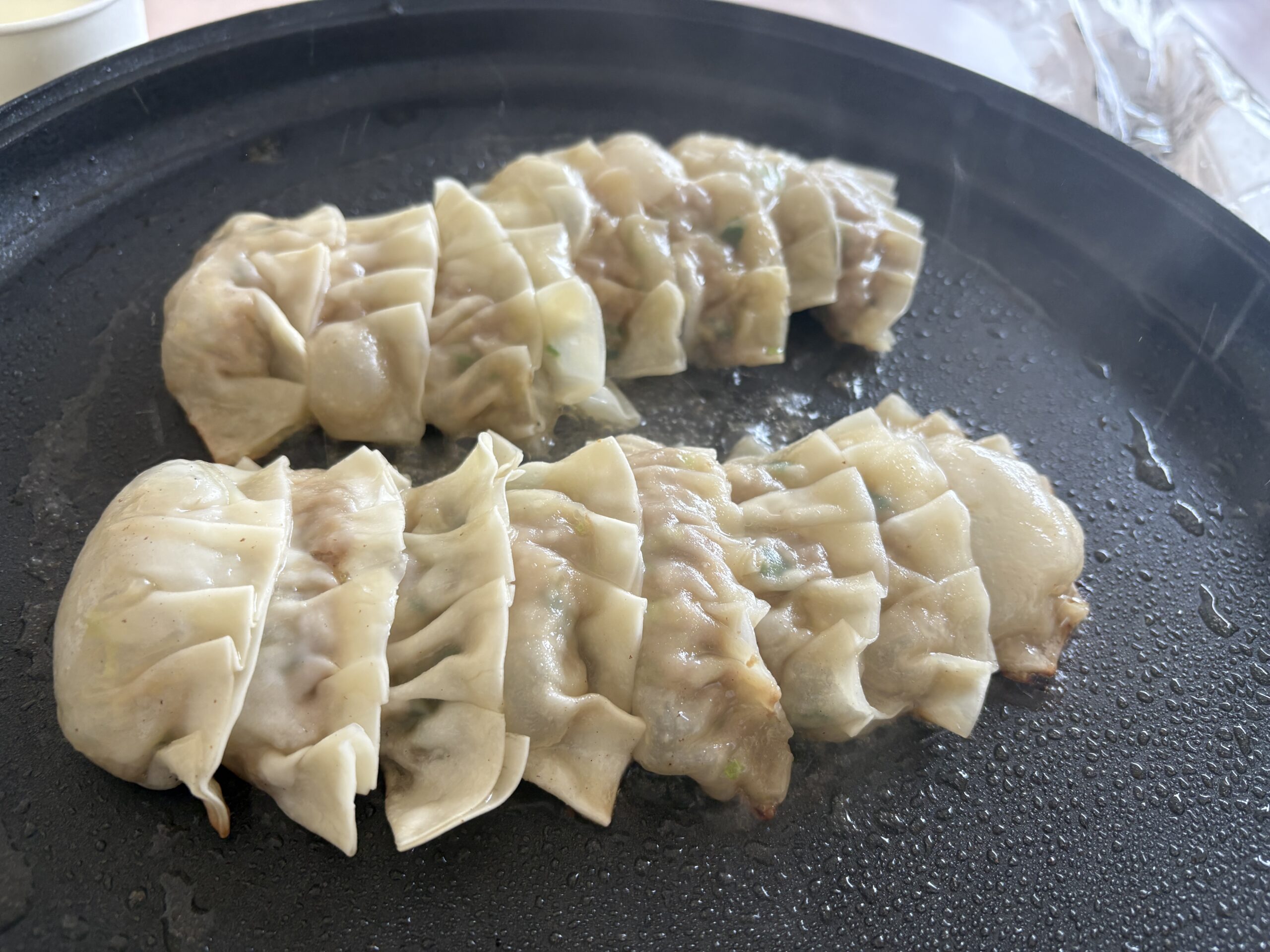 事前にスタッフが準備した餃子も一緒に焼いています🔥