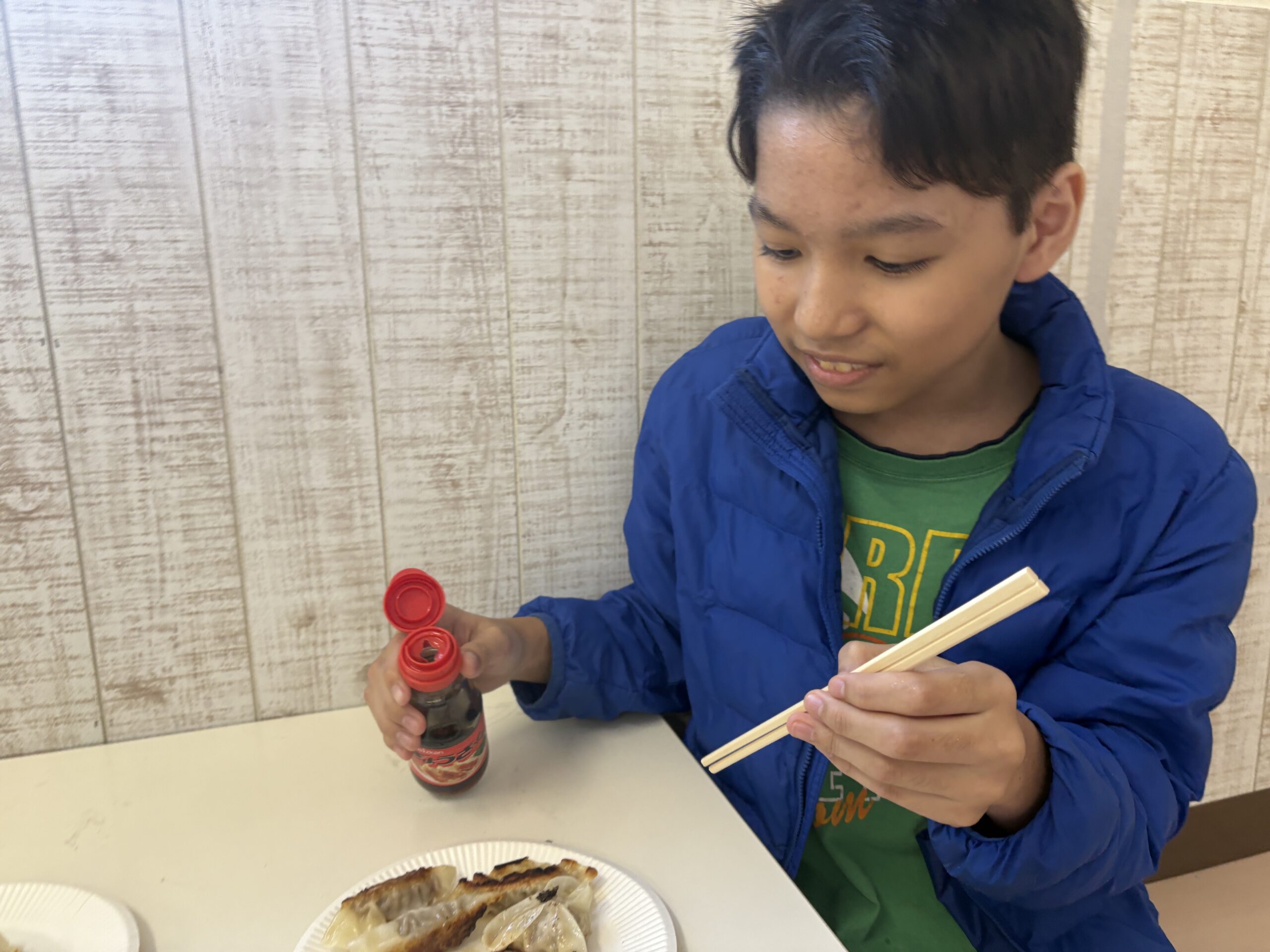 家から持参したご飯などと一緒に お昼ご飯として実食 🥟🍚