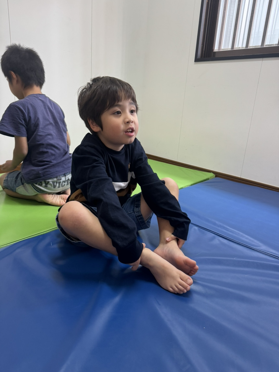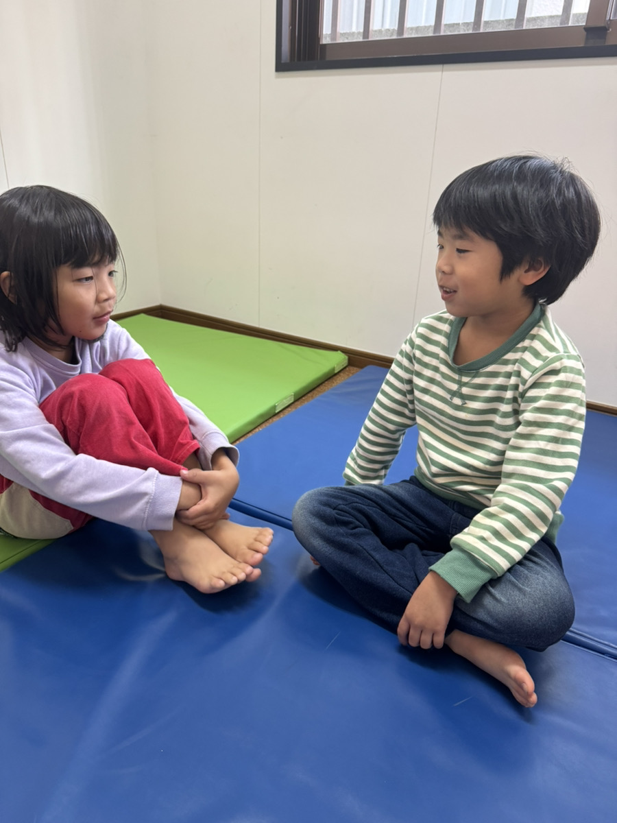 本日の課題は「SST(ソーシャルスキルトレーニング)」でした。 今回は、人との**距離感(パーソナルスペース)**について学びました。 人それぞれ、心地よいと感じる距離は違い、距離が近すぎると不安や嫌な気持ちになる人もいることを、子どもたちにわかりやすく伝えました。特に「はじめまして」の相手に対しては、 適切な距離を保つことが大切であることを説明し、 距離感の目安として「前ならいをした時のスペースがちょうどいい距離だよ」と具体的に伝えました。 「わからなくなった時は、前ならいを思い出してね」と声かけをしています。