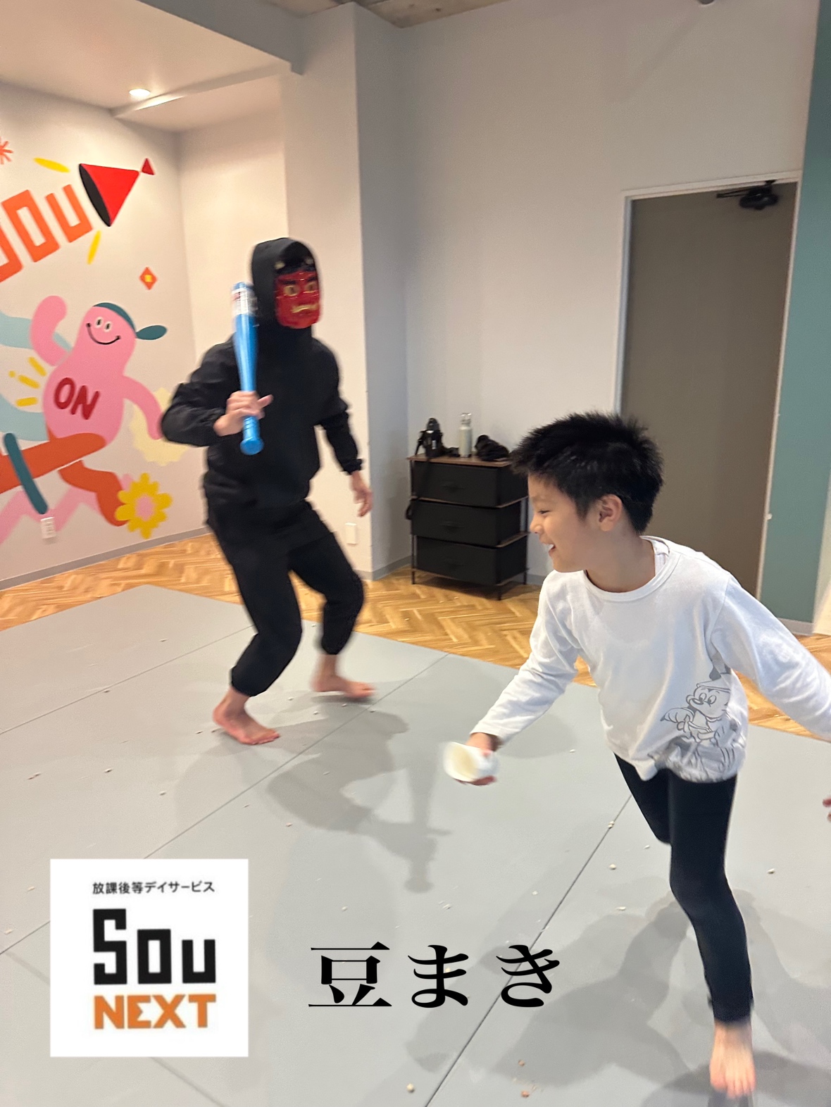 「おにはそと!」「ふくはうち!」と元気いっぱいに豆を投げる姿が見られました✨