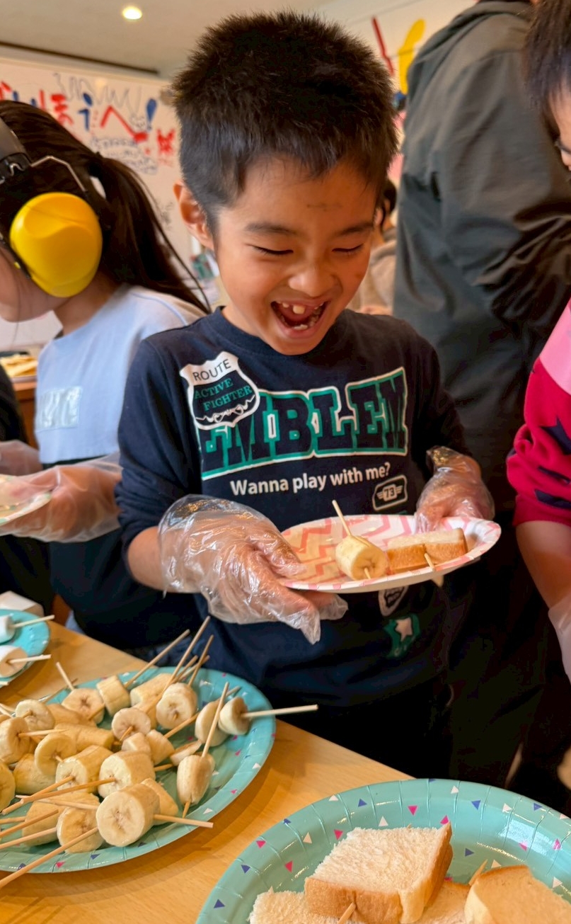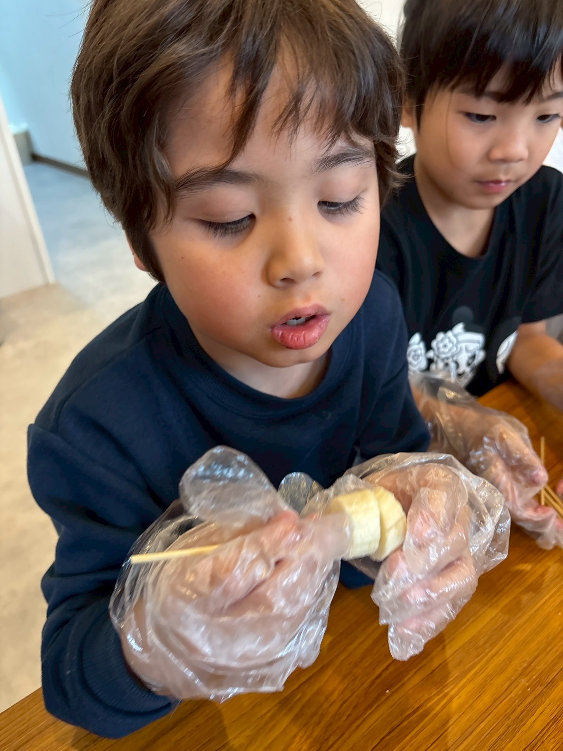 これらの食材を串に刺し、チョコをつけてみんなで食べました(^^)