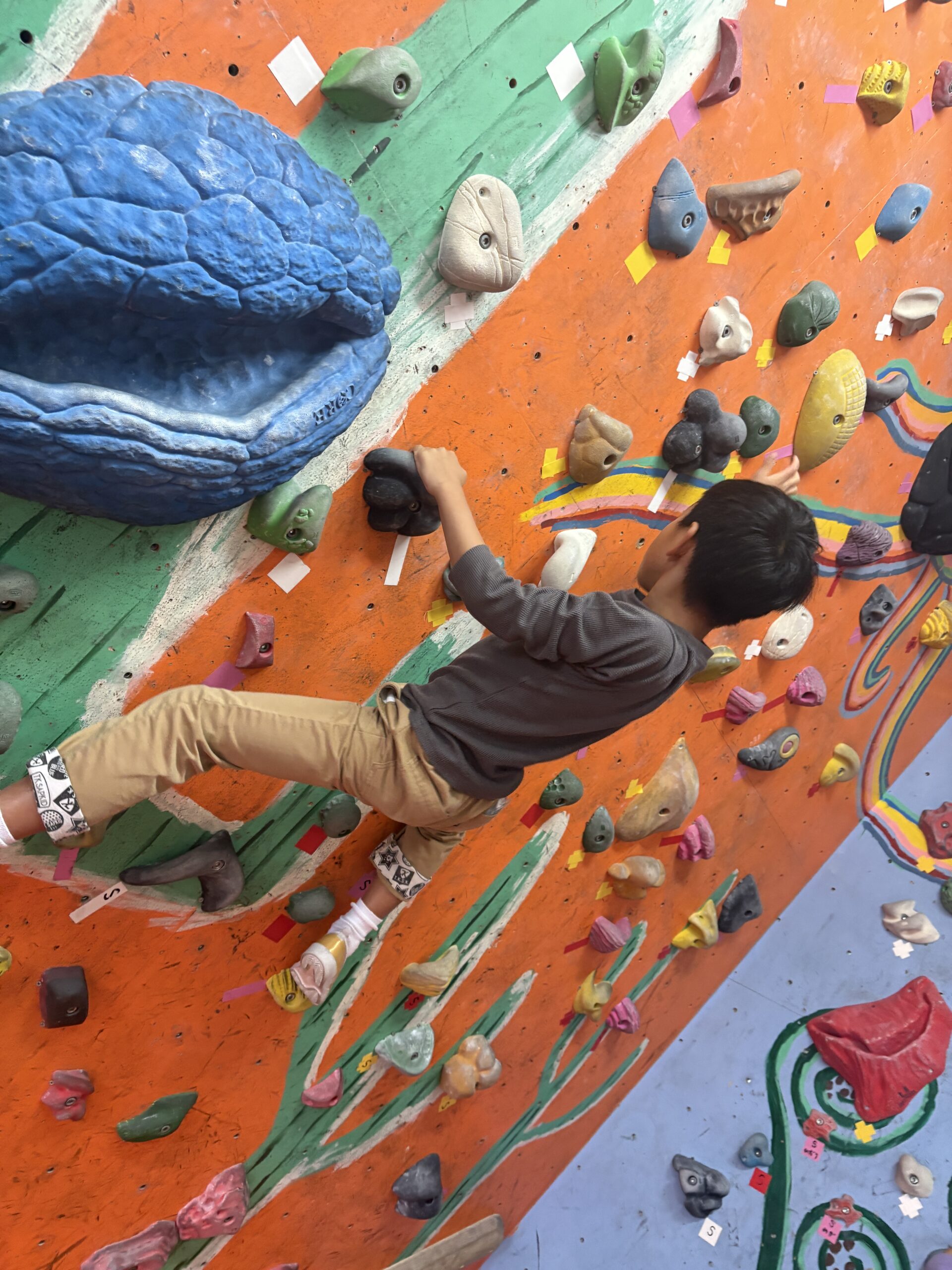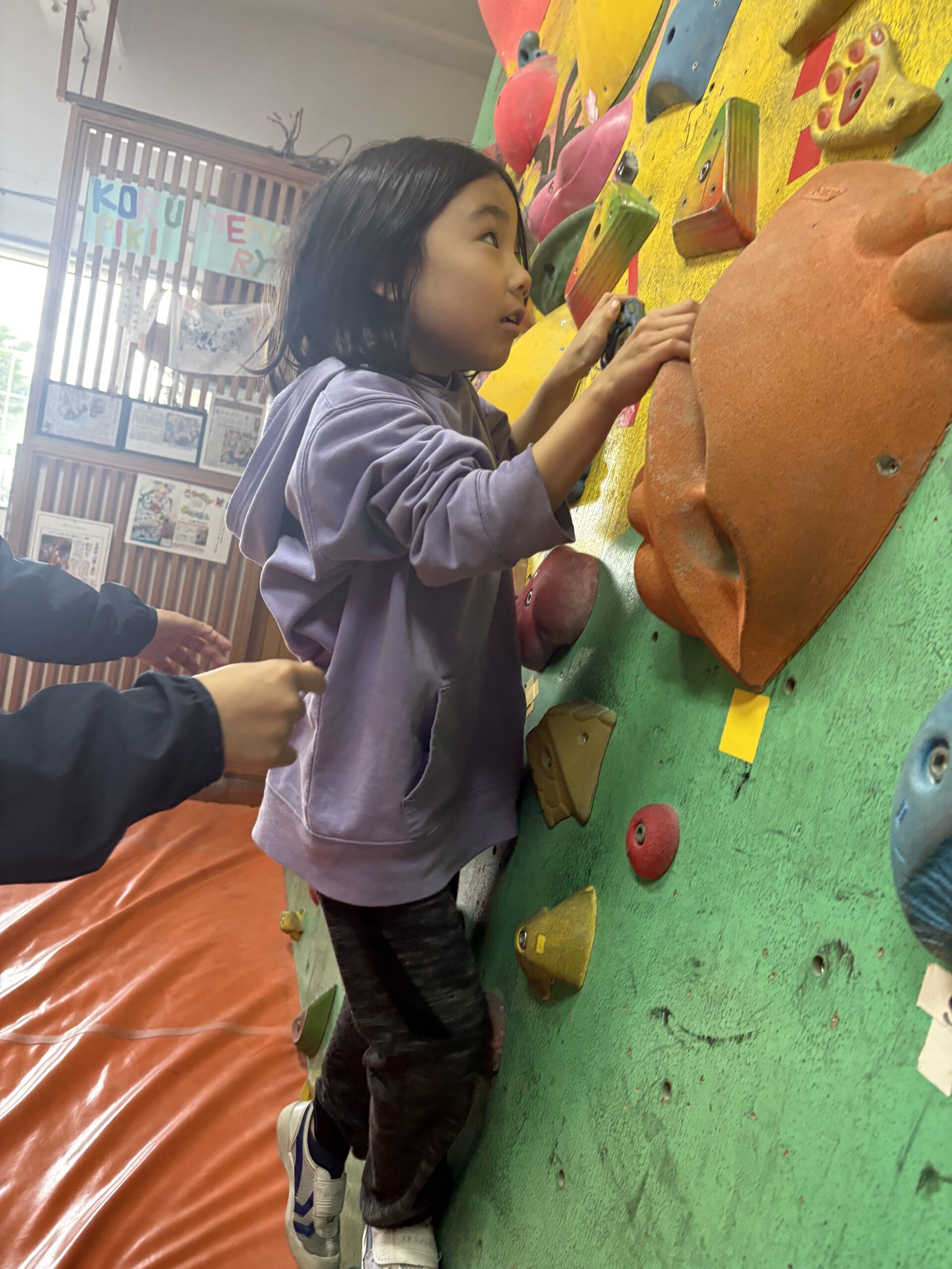 最初は「難しい!」と言っていたお子様も、コツをつかむと少しずつ上へ進めるようになり、「できた!」と嬉しそうな表情を見せてくれました✨