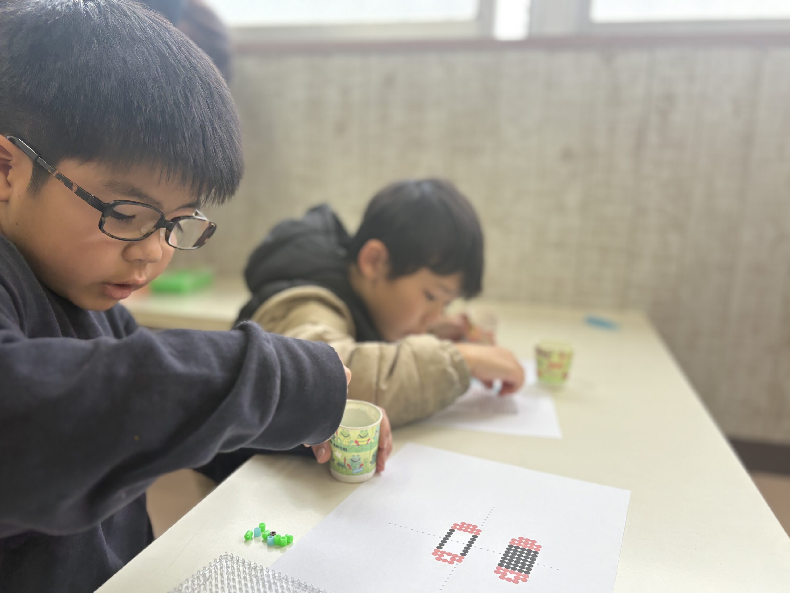 今回は用意された図案を参考にしながら、アイロンビーズを使ってネームタグを作りました🎨