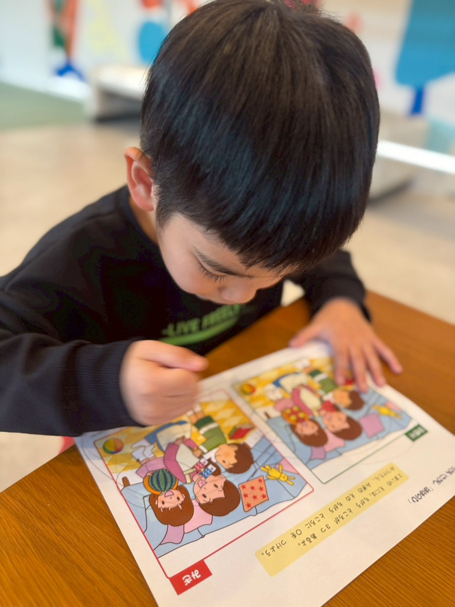その後、脳トレとして「間違い探し」に挑戦しました。制限時間は1枚につき5分とし、時間内に見つけられるよう集中して取り組んでもらいました。