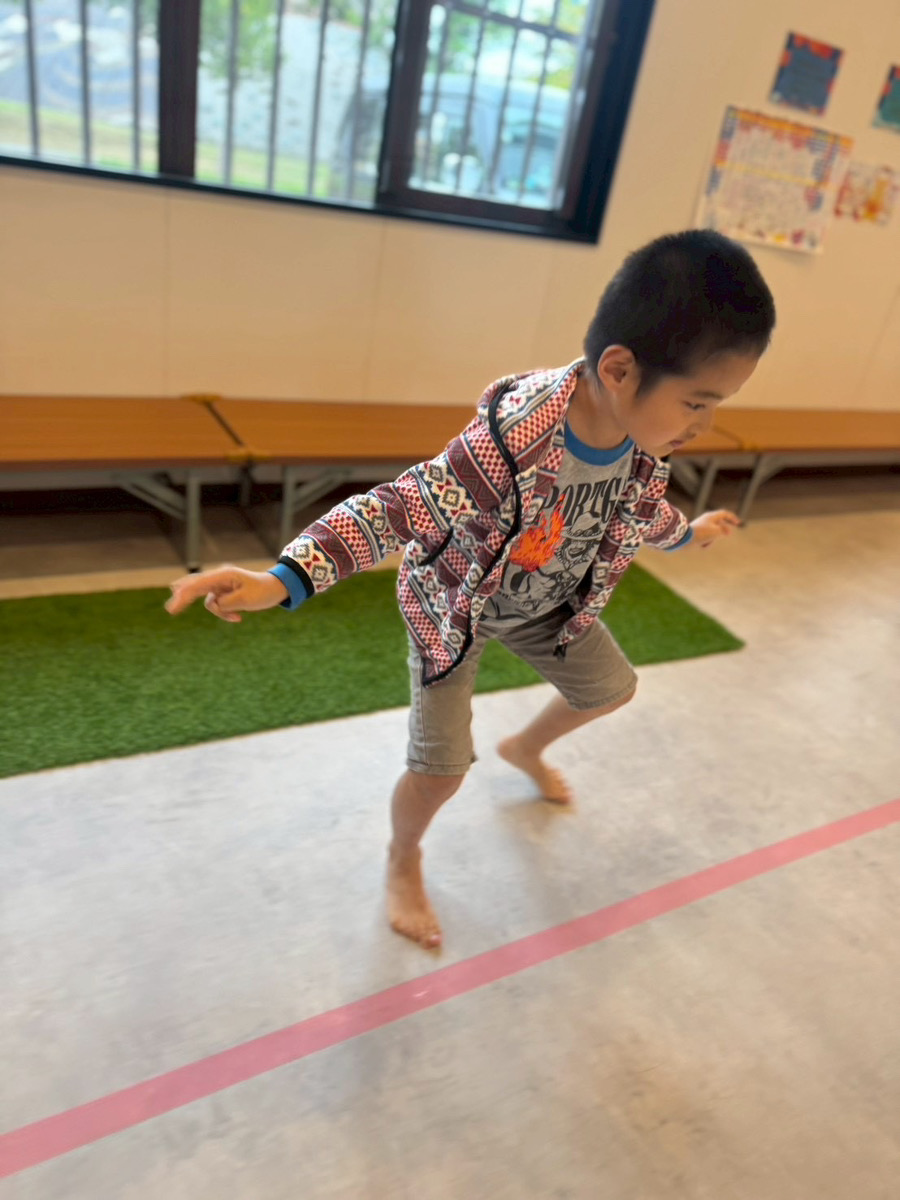 バランスを取りながら姿勢を維持することで、体幹を使う運動となりました。