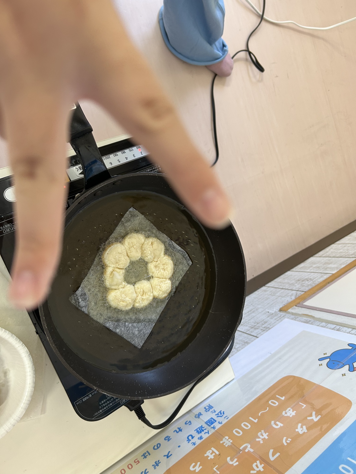 ドーナツ作りでは、女子チームが一生懸命生地をこねて形を整え、油でドーナツを揚げて上手に美味しそうなドーナツが完成しました👏