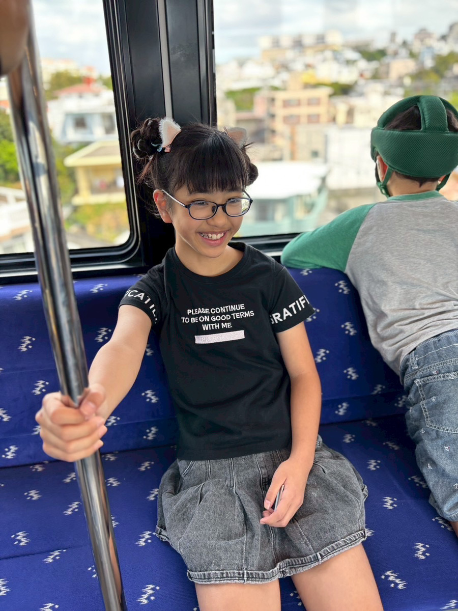 本日の課題は、モノレール体験でした。今回は、浦西駅から首里駅までモノレールに乗り、往復の移動を行いました🚝 チケットの購入は、各グループのリーダーが担当。 自分たちで切符を買う経験を通して、公共交通機関の利用方法を学びました。