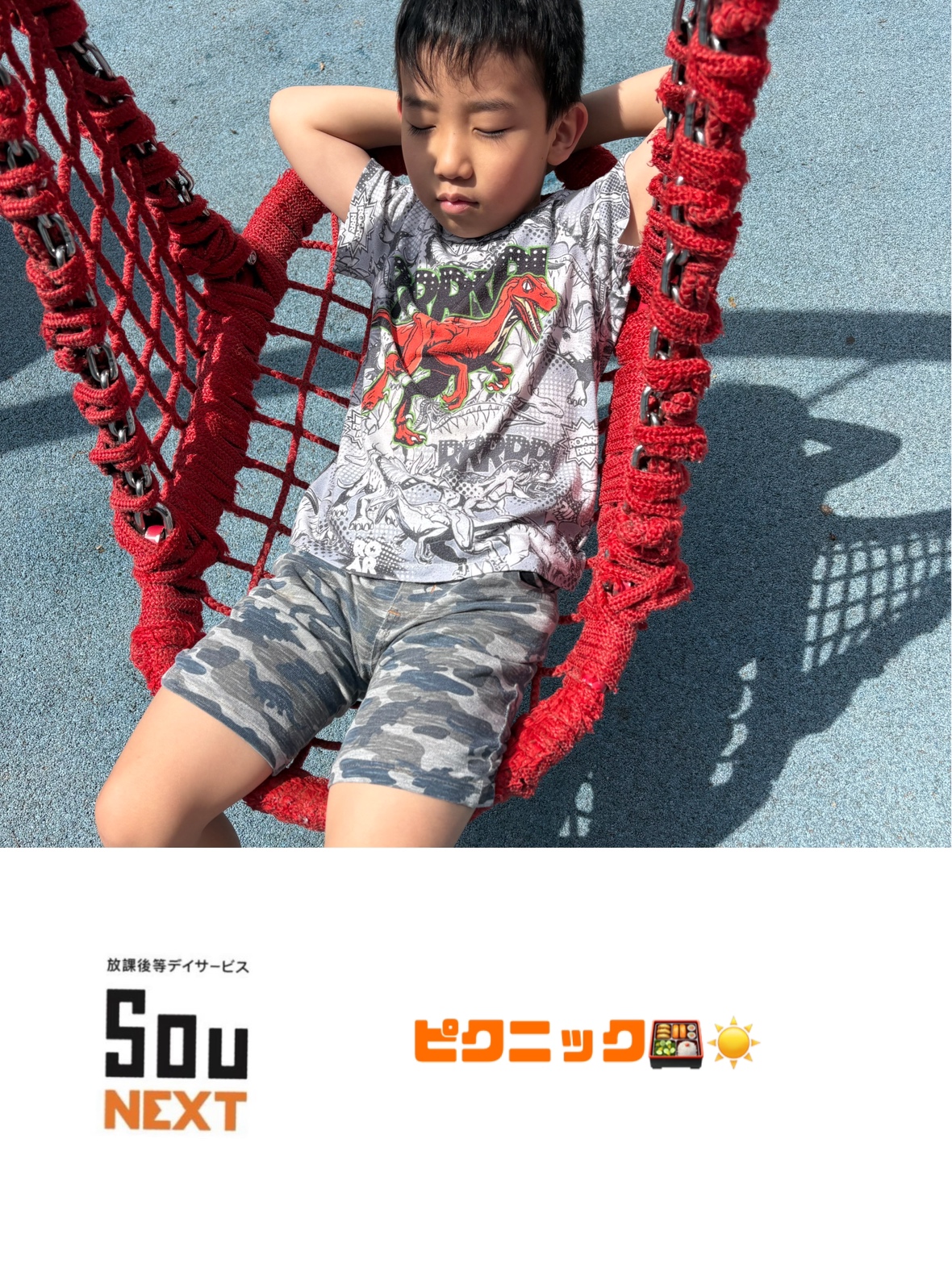青空の下でみんなで昼食タイム🍱 外の空気を感じながら食べるごはんは、いつもよりちょっと特別で嬉しそうな表情がたくさん見られました!