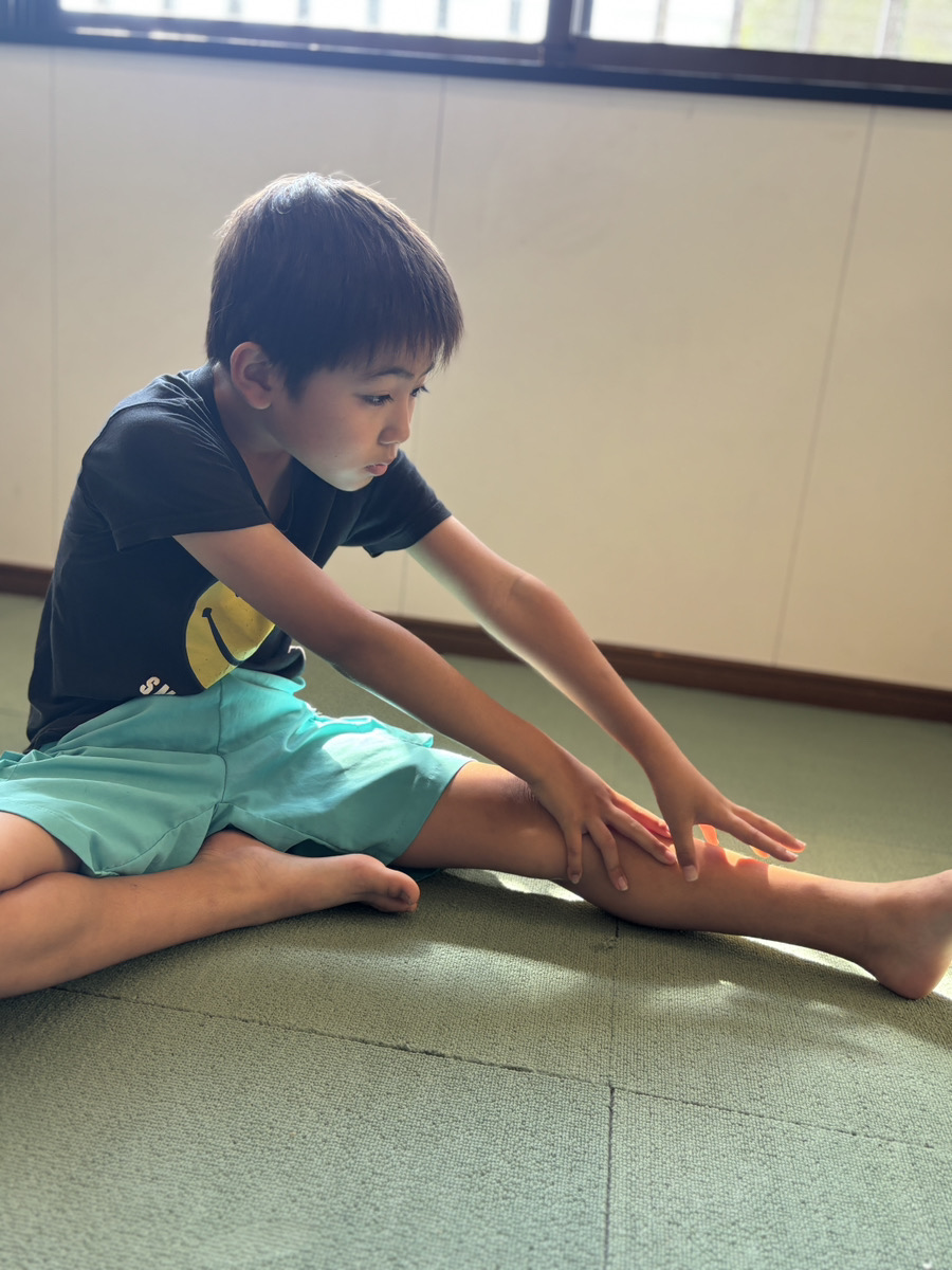 低学年は自分のペースでじっくり、 高学年はペアで声を掛け合いながらストレッチに挑戦🤝✨