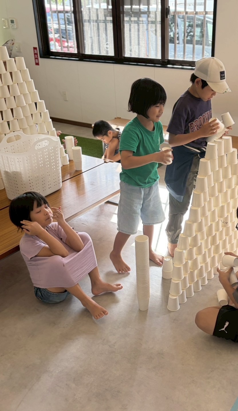 その後はチームで作戦会議を行い、「どうすればもっと高く積めるか」を話し合って再チャレンジ🔥最初の記録を意識しながら、協力して積み上げる姿が見られました✨