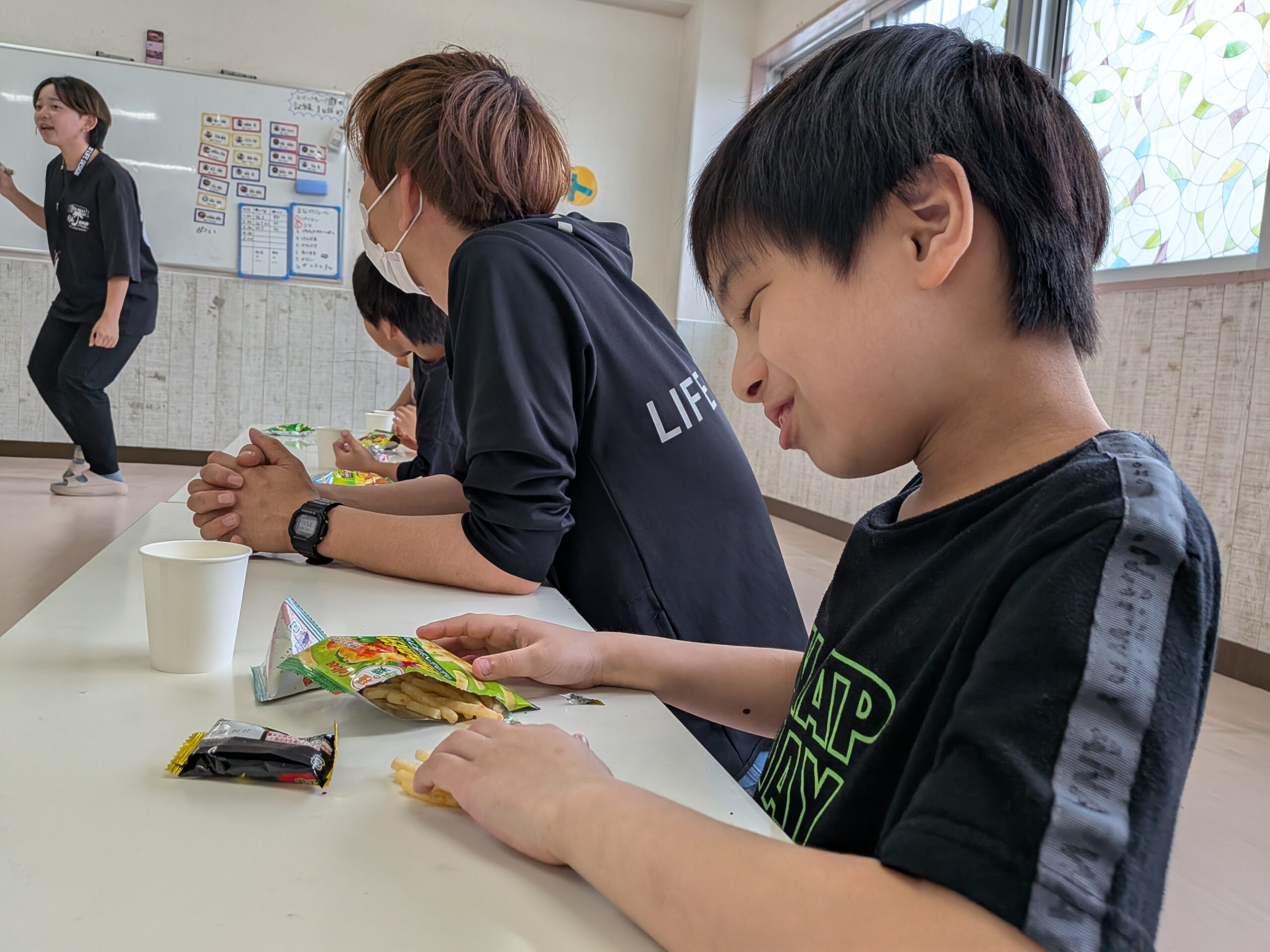 まずはみんなで、心を込めて「ハッピーバースデー」の歌をプレゼント🎵 お菓子を囲みながら、和やかで温かい雰囲気の中でパーティーがスタートしました。お友達の成長をみんなで喜ぶ時間は、お子様たちの「社会性」を育む大切なひとときですね。