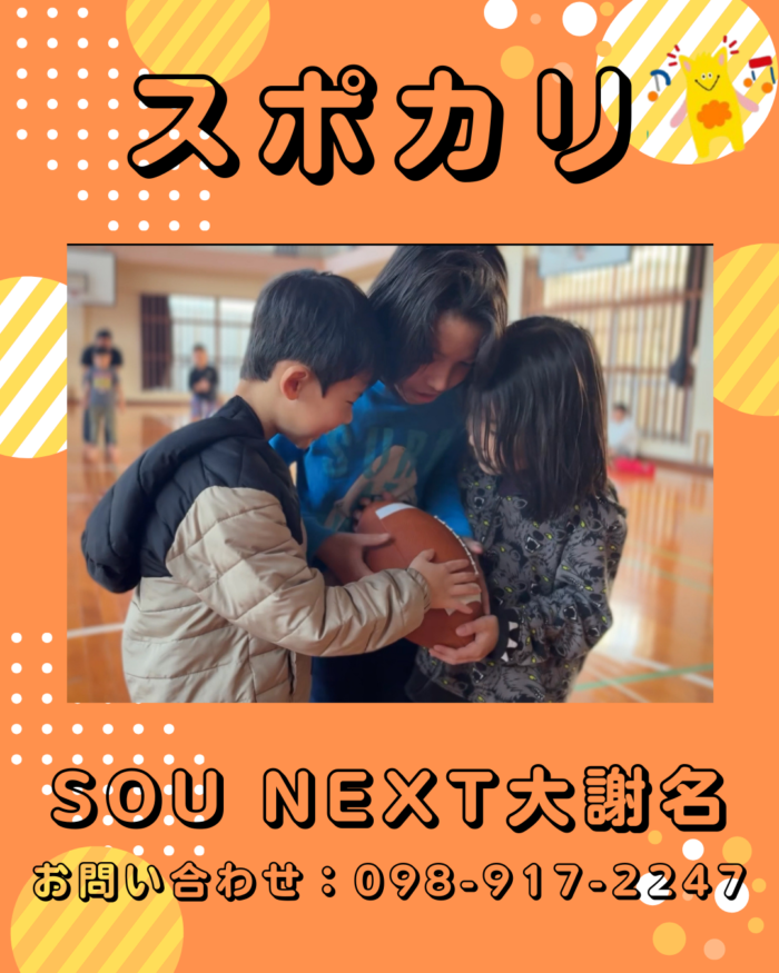 SOU BLOGSOUのブログ CATEGORY すべて SOU FIRST 志真志 SOU FIRST経塚 SOU PERSONAL 経塚 お知らせ SOU FIRST 高原 SOU FIRST 安慶名 SOU PERSONAL 北谷 SOU NEXT 大謝名 SOU NEXT 高原 SOU NEXT 海邦 事業所紹介 すべて YEAR 2026 2026 【今日の課題は制作!絵馬づくり】 2026/01/08 SOU NEXT 海邦 Sou!スポーツカリキュラム(フラッグフッドボール) 2026/01/15 SOU NEXT 大謝名 トレキング 2026/01/07 SOU NEXT 高原 SST 2026/01/07 SOU NEXT 海邦 正月あそび(福笑い) 2026/01/06 SOU NEXT 高原 初詣♪ 2026/01/06 SOU NEXT 海邦 公園遊びin糸蒲公園 2026/01/06 SOU NEXT 大謝名 名護パイナップルパークへ🍍 2026/01/05 SOU NEXT 高原 新年会・駄菓子屋へ行こう! 2026/01/05 SOU NEXT 大謝名 SOUスポーツ 2026/01/05 SOU NEXT 海邦 前へ 123 CONTACT実際に活動している様子を見学&無料体験できます! 見学&無料体験お申し込み
