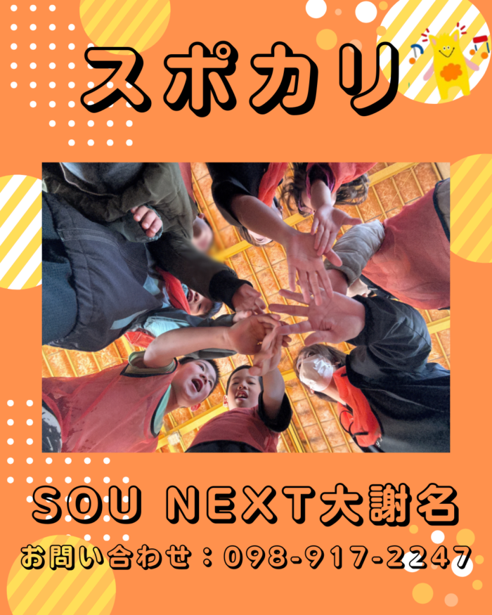 SOU BLOGSOUのブログ CATEGORY SOU NEXT 大謝名 SOU FIRST 志真志 SOU FIRST経塚 SOU PERSONAL 経塚 お知らせ SOU FIRST 高原 SOU FIRST 安慶名 SOU PERSONAL 北谷 SOU NEXT 大謝名 SOU NEXT 高原 SOU NEXT 海邦 事業所紹介 すべて YEAR 2026 2026 Sou!スポーツカリキュラム 2026/01/22 SOU NEXT 大謝名 SST 2026/01/21 SOU NEXT 大謝名 体育館自由遊び(ミニレク) 2026/01/20 SOU NEXT 大謝名 工作(ぷくぷくシールを作ろう) 2026/01/19 SOU NEXT 大謝名 クッキング(餃子作り) 2026/01/17 お知らせ 感覚遊び(小麦粘土で餃子を作ろう!) 2026/01/16 SOU NEXT 大謝名 SST 2026/01/14 SOU NEXT 大謝名 体育館遊び 2026/01/13 お知らせ お出かけ(揚げパン買って公園へGO!) 2026/01/12 SOU NEXT 大謝名 書き初め 2026/01/09 SOU NEXT 大謝名 123451020 次へ CONTACT実際に活動している様子を見学&無料体験できます! 見学&無料体験お申し込み