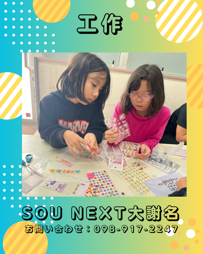 SOU BLOGSOUのブログ CATEGORY SOU NEXT 大謝名 SOU FIRST 志真志 SOU FIRST経塚 SOU PERSONAL 経塚 お知らせ SOU FIRST 高原 SOU FIRST 安慶名 SOU PERSONAL 北谷 SOU NEXT 大謝名 SOU NEXT 高原 SOU NEXT 海邦 事業所紹介 すべて YEAR 2026 2026 Sou!スポーツカリキュラム 2026/01/22 SOU NEXT 大謝名 SST 2026/01/21 SOU NEXT 大謝名 体育館自由遊び(ミニレク) 2026/01/20 SOU NEXT 大謝名 工作(ぷくぷくシールを作ろう) 2026/01/19 SOU NEXT 大謝名 クッキング(餃子作り) 2026/01/17 お知らせ 感覚遊び(小麦粘土で餃子を作ろう!) 2026/01/16 SOU NEXT 大謝名 SST 2026/01/14 SOU NEXT 大謝名 体育館遊び 2026/01/13 お知らせ お出かけ(揚げパン買って公園へGO!) 2026/01/12 SOU NEXT 大謝名 書き初め 2026/01/09 SOU NEXT 大謝名 123451020 次へ CONTACT実際に活動している様子を見学&無料体験できます! 見学&無料体験お申し込み