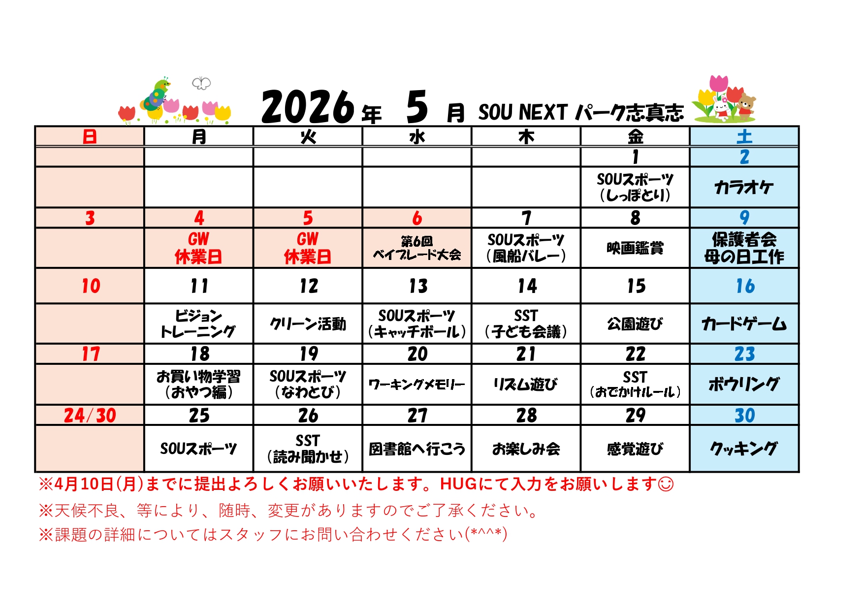 (SNパーク志真志)5月スケジュール