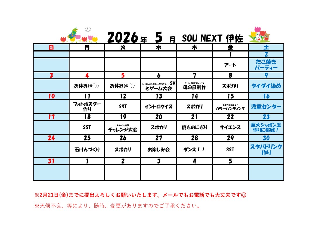 (SN伊佐)5月スケジュール