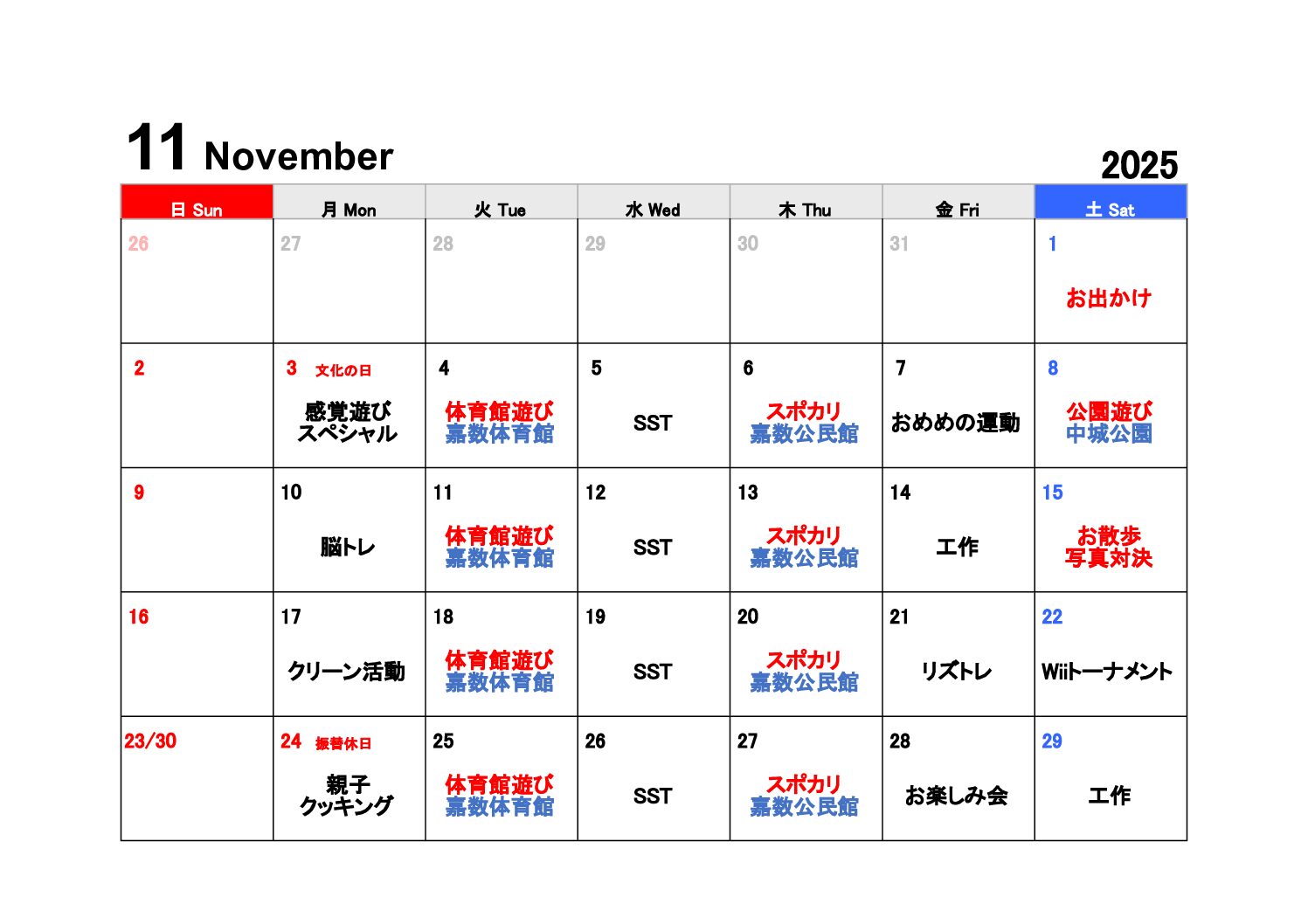 (SN大謝名)11月スケジュール