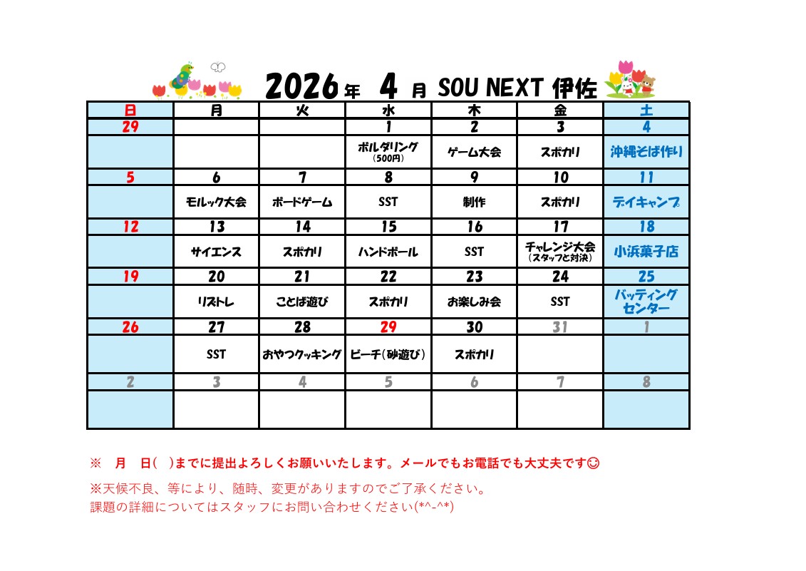 (SN伊佐)4月スケジュール