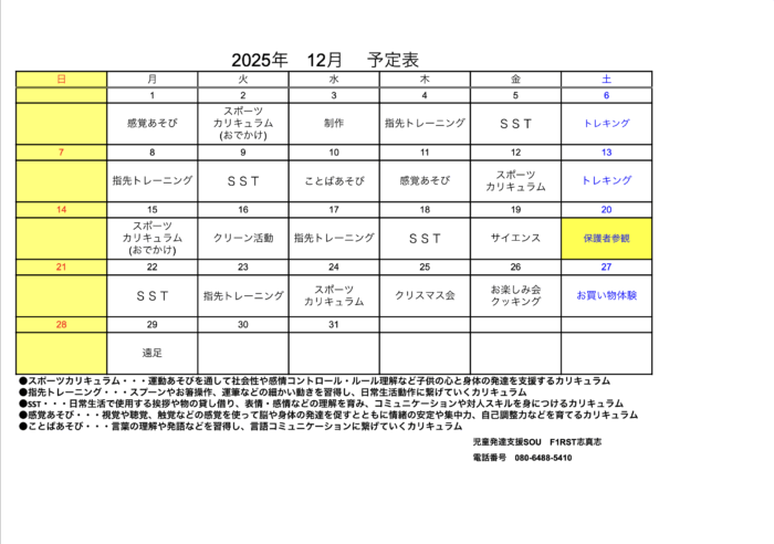 SCHEDULE月間スケジュール 事業所 SOU FIRST志真志 SOU FIRST高原SOU FIRST安慶名SOU FIRST栄野比SOU FIRST志真志SOU FIRST牧港SOU NEXT高原SOU NEXT海邦SOU NEXT 牧港SOU NEXT パーク志真志SOU VISION 志真志SOU NEXT ジュニア志真志SOU NEXT ライブリー志真志SOU NEXT 天久SOU NEXT 大謝名SOU NEXT 伊佐 (SF志真志)11月スケジュール 2025/10/15 (SF志真志)11月スケジュール 年長 2025/10/15 (SF志真志)10月スケジュール年長 2025/09/12 (SF志真志)10月スケジュール 2025/09/12 (SF志真志)年長カレンダー 2025/08/16 (SF志真志)9月スケジュール 2025/08/16 (SF志真志)8月スケジュール 年長 2025/07/14 (SF志真志)8月スケジュール 2025/07/14 (SF志真志)7月スケジュール 2025/06/24 (SF志真志)7月スケジュール 年長 2025/06/24 12 次へ CONTACT実際に活動している様子を見学&無料体験できます! 見学&無料体験お申し込み