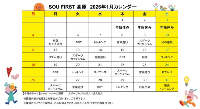 SCHEDULE月間スケジュール 事業所 SOU FIRST高原 SOU FIRST高原SOU FIRST安慶名SOU FIRST栄野比SOU FIRST志真志SOU FIRST牧港SOU NEXT高原SOU NEXT海邦SOU NEXT 牧港SOU NEXT パーク志真志SOU VISION 志真志SOU NEXT ジュニア志真志SOU NEXT ライブリー志真志SOU NEXT 天久SOU NEXT 大謝名SOU NEXT 伊佐 (SF高原)1月スケジュール 2025/12/16 (SF高原)11月スケジュール 2025/10/15 (SF高原)10月スケジュール 2025/09/12 (SF高原)9月スケジュール 2025/08/16 (SF高原)8月スケジュール 2025/07/14 (SF高原)6月スケジュール 2025/05/15 (SF高原)5月スケジュール 2025/04/17 (SF高原)4月スケジュール 2025/03/13 (SF高原)2月スケジュール 2025/01/14 (SF高原)1月スケジュール 2024/12/11 12 次へ CONTACT実際に活動している様子を見学&無料体験できます! 見学&無料体験お申し込み